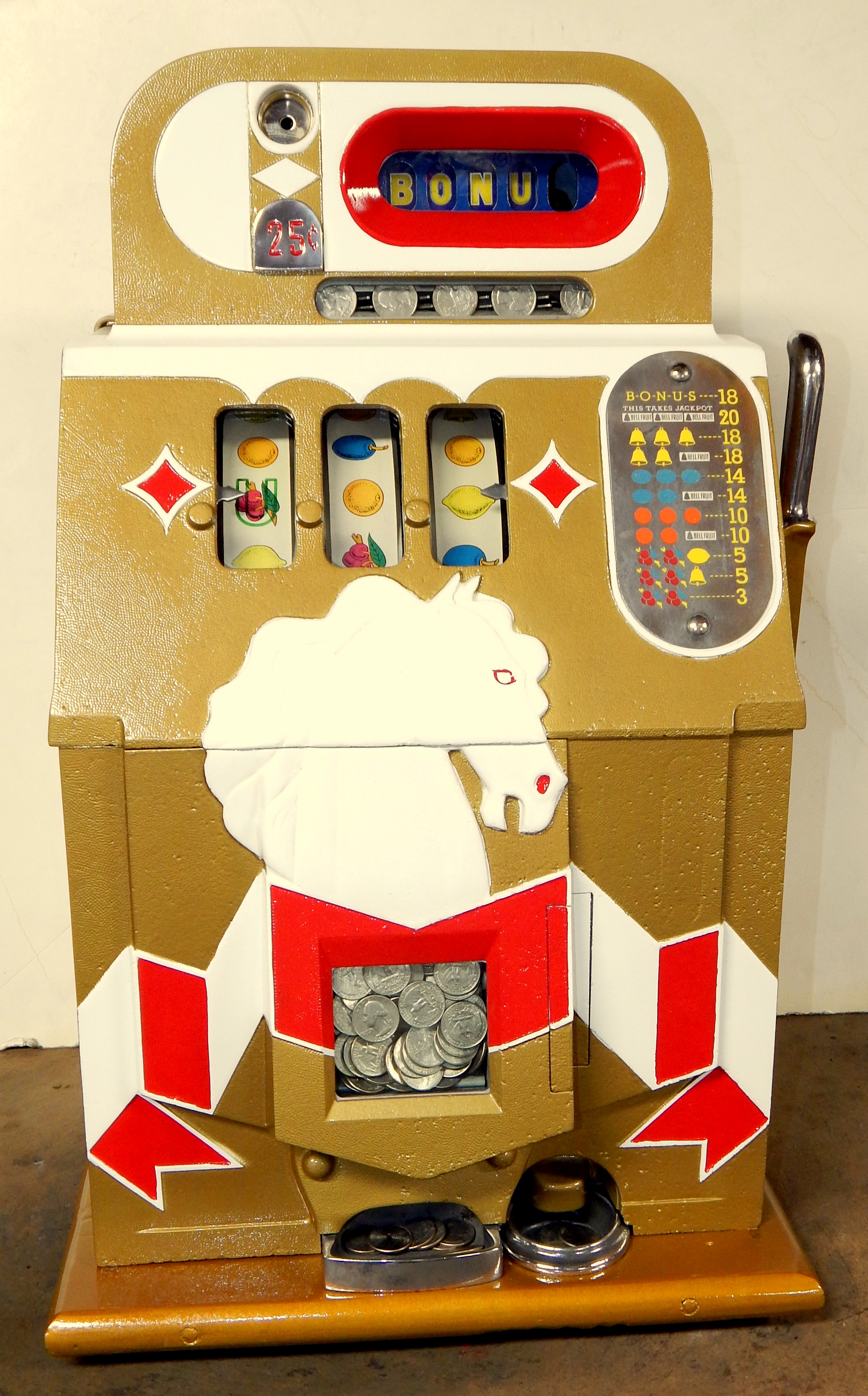 My name is Richard Bright and I have been restoring antique slot machines for over 35 years, you could say I have repaired or restored at least 500 antique slot machines in my lifetime. As a Professional Firefighter " Lieutenant" now "Retired", I work twenty-four hour shifts, which has given me plenty of time to devote to restoring and repairing antique slot machines. Whether it is small repairs or full restorations, no job is too big or too small. I have traveled all around the country in order to buy, repair or sell my antique slot machines. This business is set around a very small circle of qualified people to do this kind of work. I feel if you treat the customer right and gain their confidence by doing good work, they will be a return customer in the future. The slot machines we restore are restored the right way to the customer specifications, the first time. When a customer purchases a slot machine from me, I offer lifetime guarantee, as long as you own the slot machine, providing you bring it to me for repairs. There are not too many people in this business that will make an offer like that and actually stand by it. We have a large inventory of parts for antique slot machines. In the case of repairs and restorations, there is a 99% chance the part will be replaced with an original part, instead of a reproduction. Machines weigh any where from 75-90 pounds, measurements 16"X16"X 28" height. There is a 10% restocking fee on all returns.