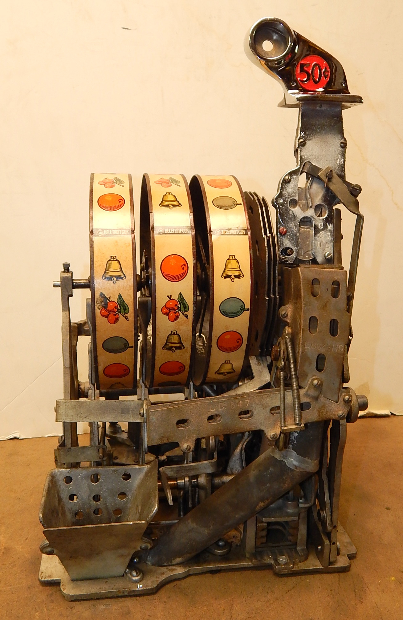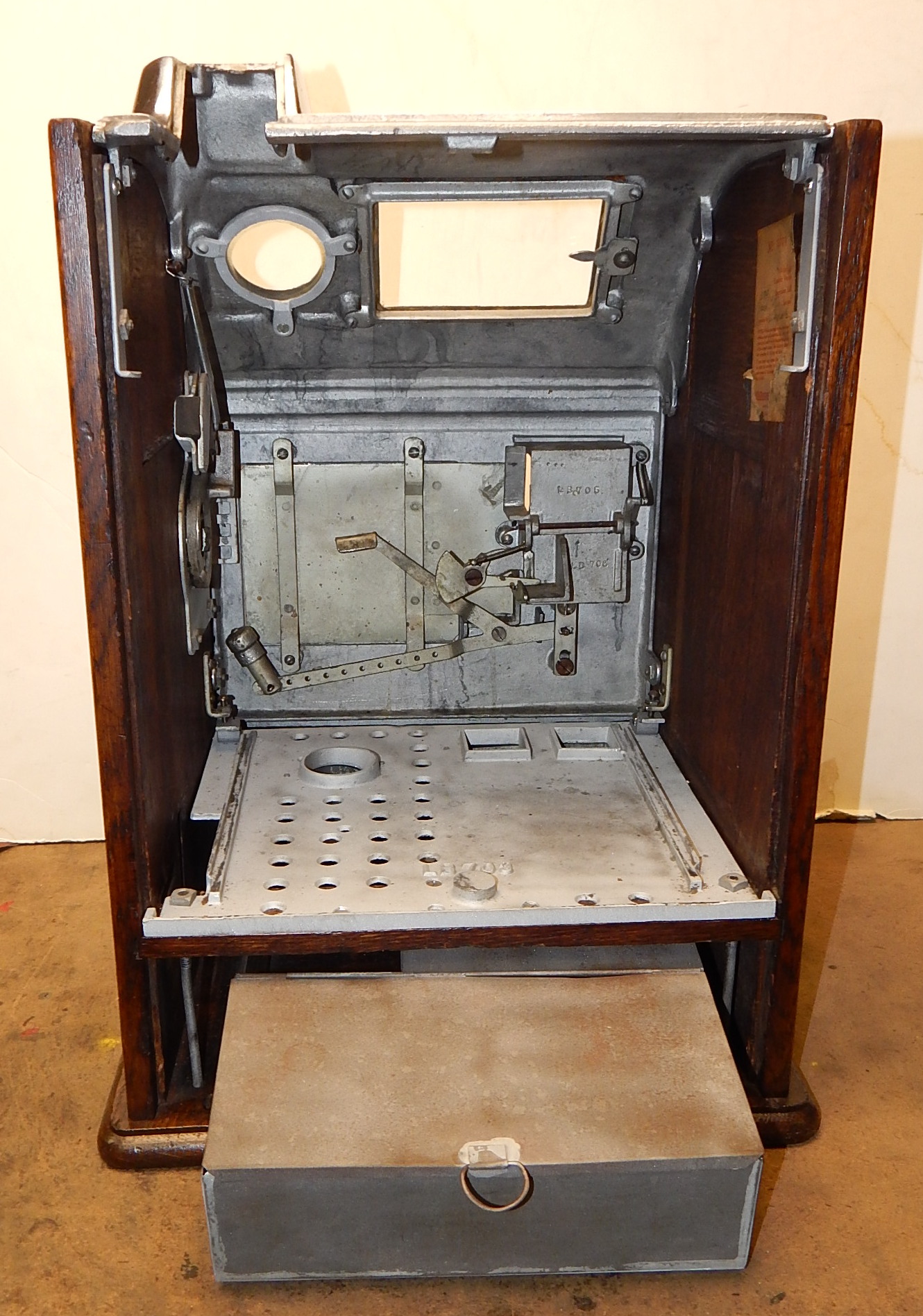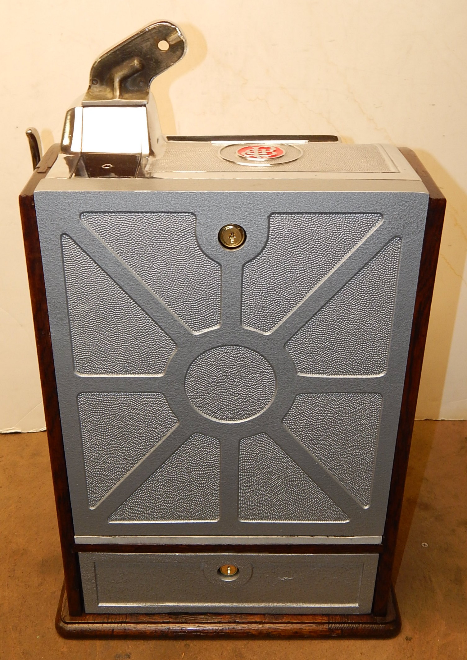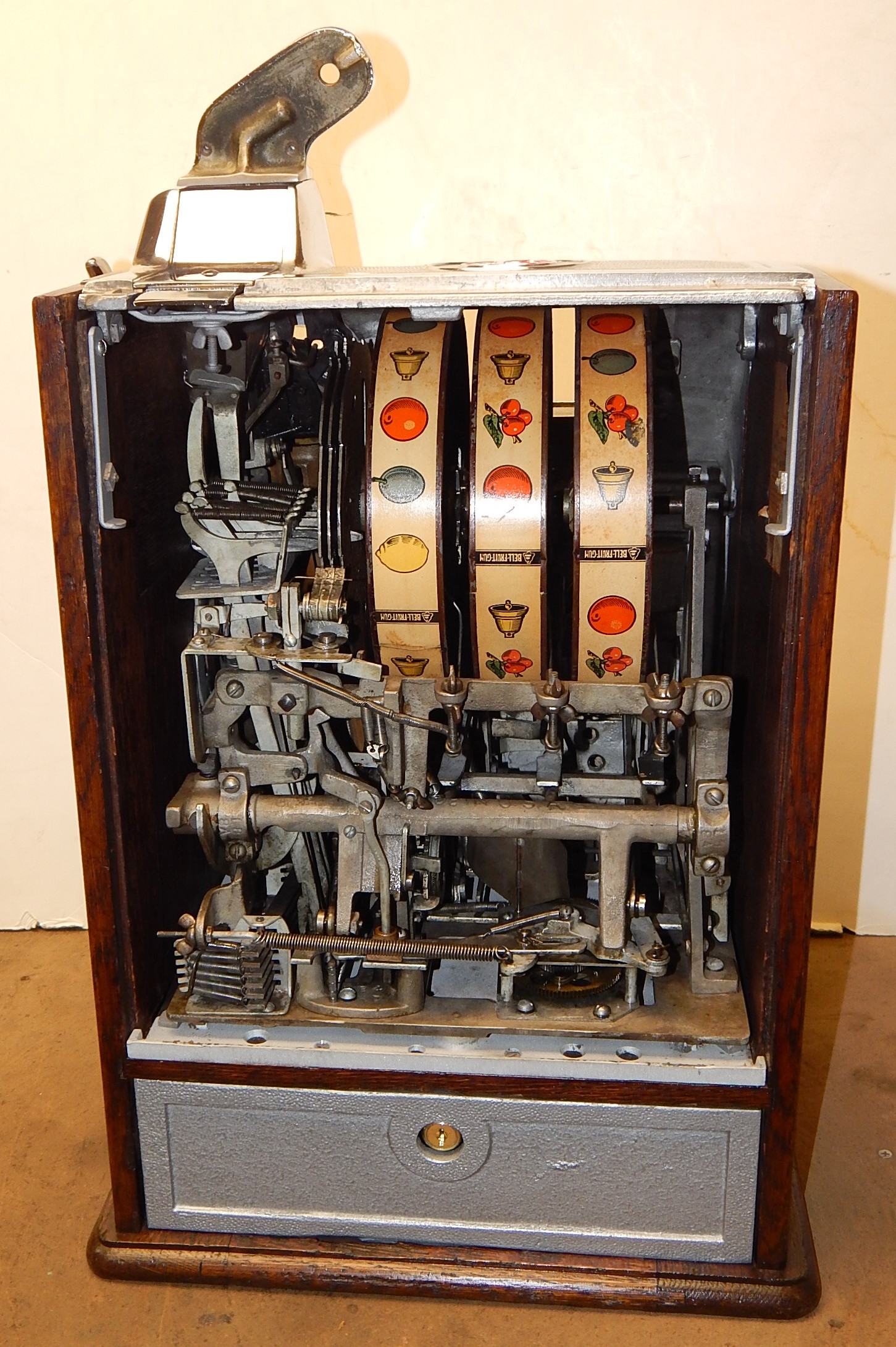 1929 Jennings Blue boy 50 cent, restored, original back door top and bottom with original locks and keys top and bottom, original cash box, original rell strips, original award card. This machine has a 10 stop mechanism with jackpot payouts. The only thing that is not original on this machine is the paint.