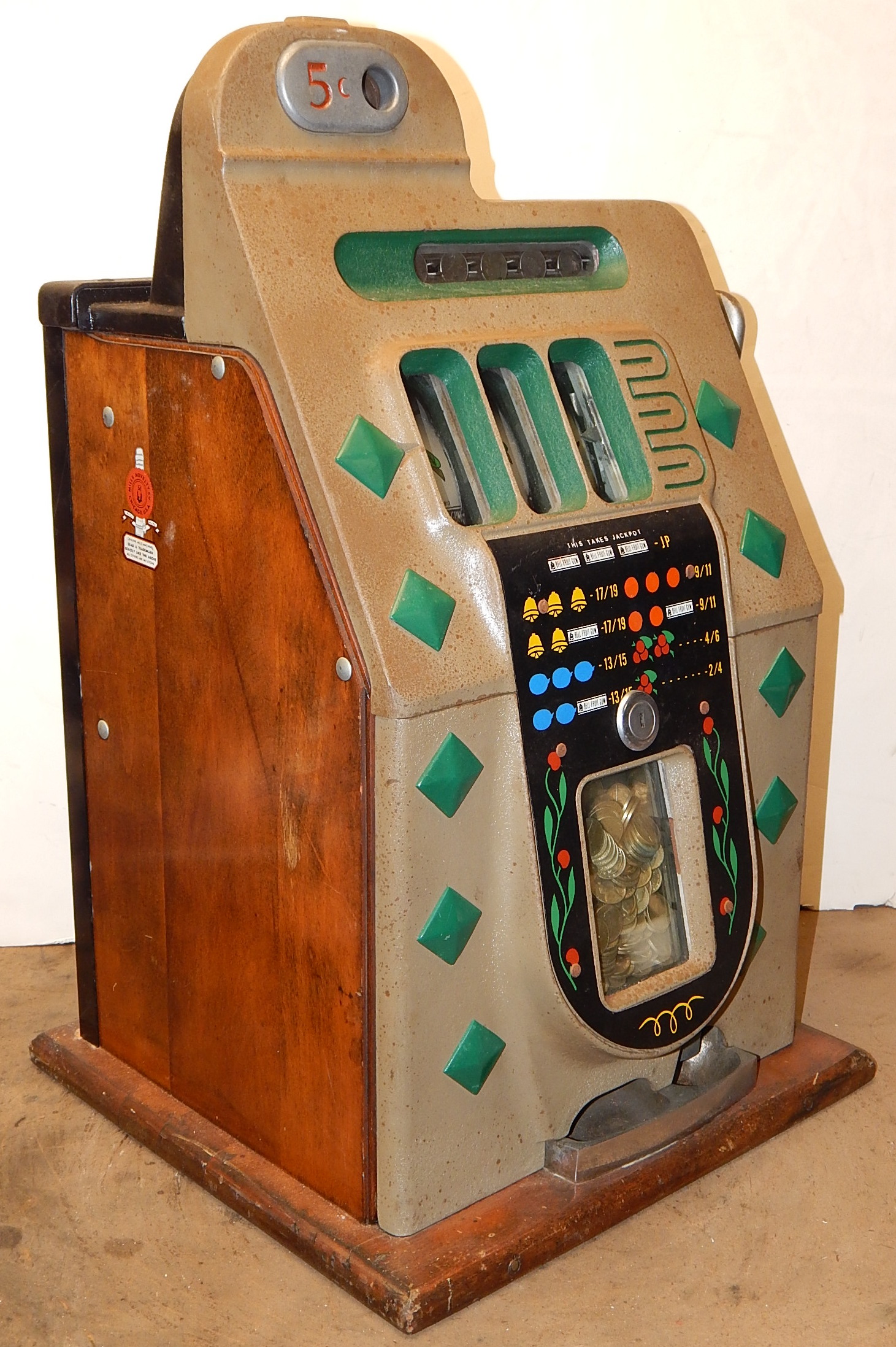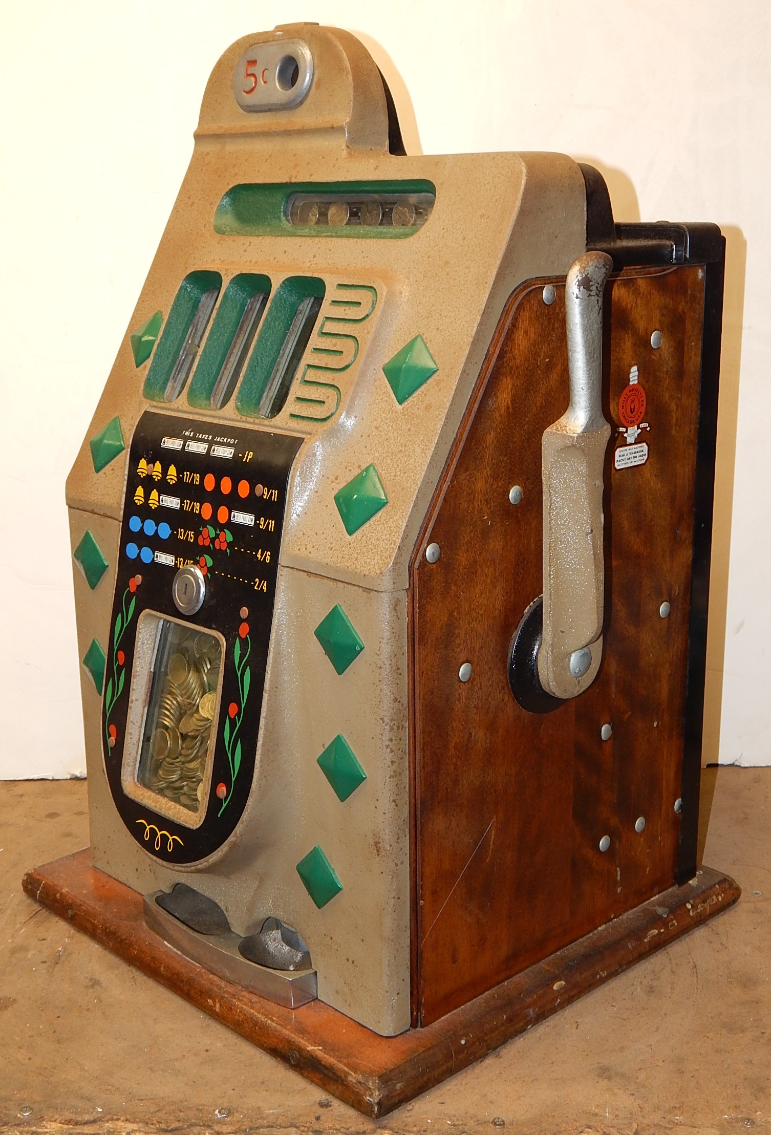 Mills 1940 Diamond Front 5 cent. Cast iron casting, front load jackpot, original cashbox. In line to be restored if not sold first.