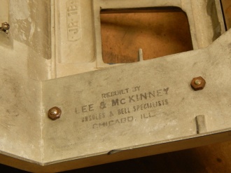 One of the most popular design models and manufactured from 1936 thru 1940. The 10 cent denomination was unique in that it had a specially designed front casting with narrow jackpot windows and twin jackpot with spacers to reduce the number of dimes the jackpot would hold. A little on the rare side. This machine was converted from a penny to a dime back in the day by Lee & McKinney Consoles & Bell Specialists Chicago, ILL. The stamp is still on the inside of the cabinet and castings.