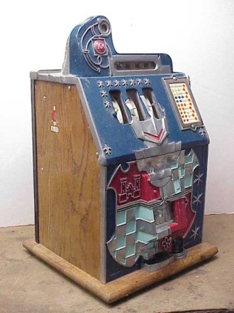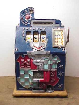1936 Mills Castle Front 10 cent, in original condition with working Jackpot and reserve, original back door, original lock with one key, original cash box, plays and pays as it should. Very easy to play.
