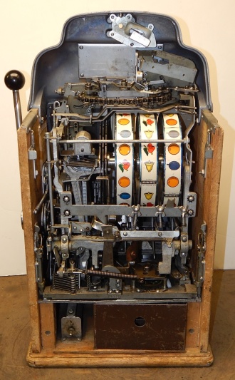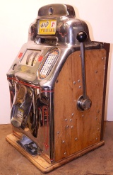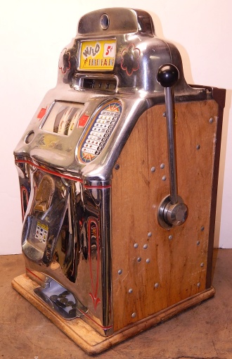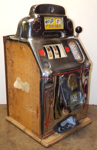 1947 Jennings Standard Chief "Wild Indian" 5 cent, all original condition, not restored. Serial numbers match. Has full funtion self feed Jack-Pot. Original condition Reel strips. Original Award card and Marquee, original back door, original Cash box. Chrome on this machine is a 8 out of a 10, not bad for 66 years old. If you are looking for untouch original then here it is. Plays very nice.