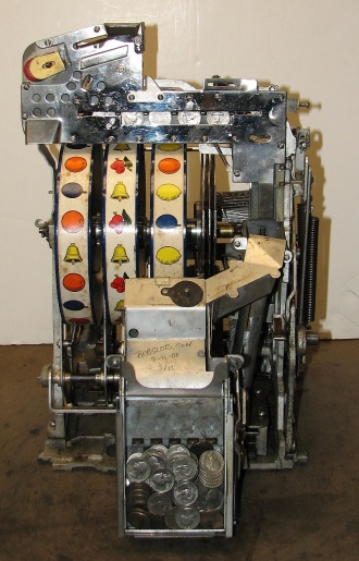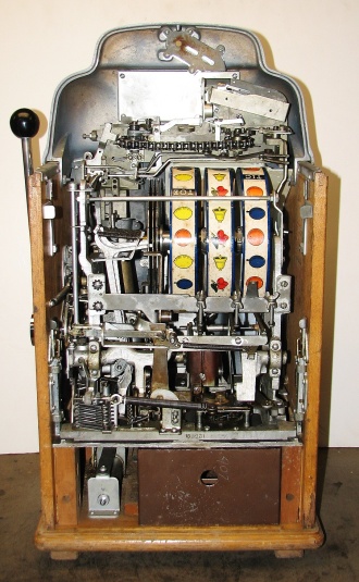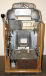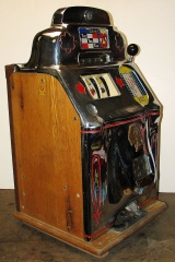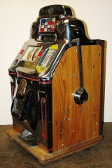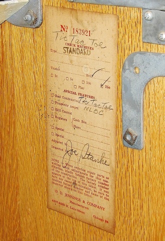 1947 Jennings Standard Chief "Tic-Tac-Toe" 25 cent, all original condition, not restored. Serial numbers match. Has full funtion self feed Jack-Pot. Original condition Reel strips. Original Award card and Marquee, original back door, original Cash box. Chrome on this machine is a 8 out of a 10, not bad for 66 years old. If you are looking for untouch original then here it is. Plays very nice.