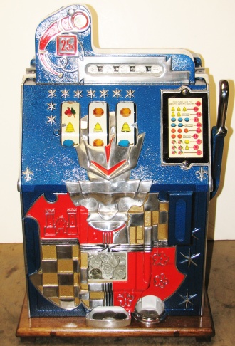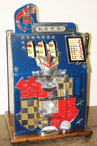 1938 Mills Castle Front 25 cent, in restored condition with working Jackpot and reserve, original Reel Strips in mint condition, original back door, original lock with one key, original cash box. Plays very easy, 3-5 payout.