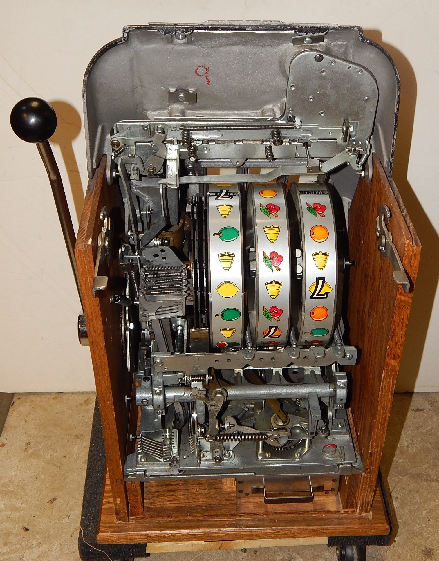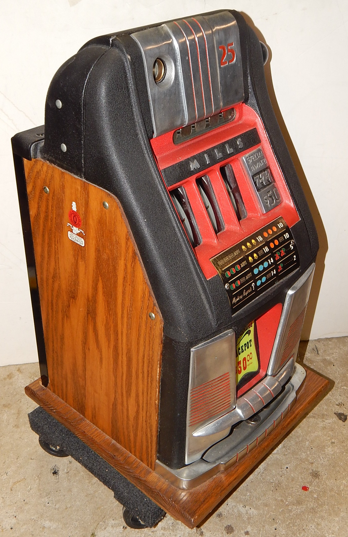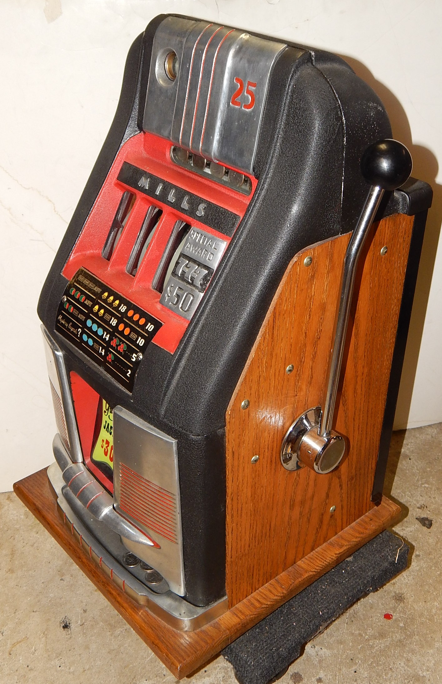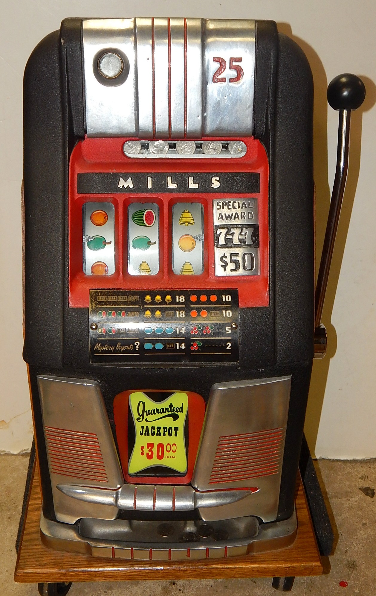 1948 Mills 7-7-7 Hi-Top, previously restored, wrinkle Black with red trim.