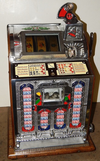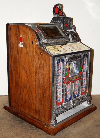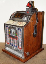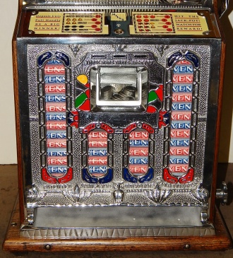 1926 Mills FOK 4 Column Jackpot Vender 5 cent, restored back to original condition. Polished not plated. This machine has, Mint vender, Jackpot which were not available when the machine was manufactured. Plays great and pays as it should.