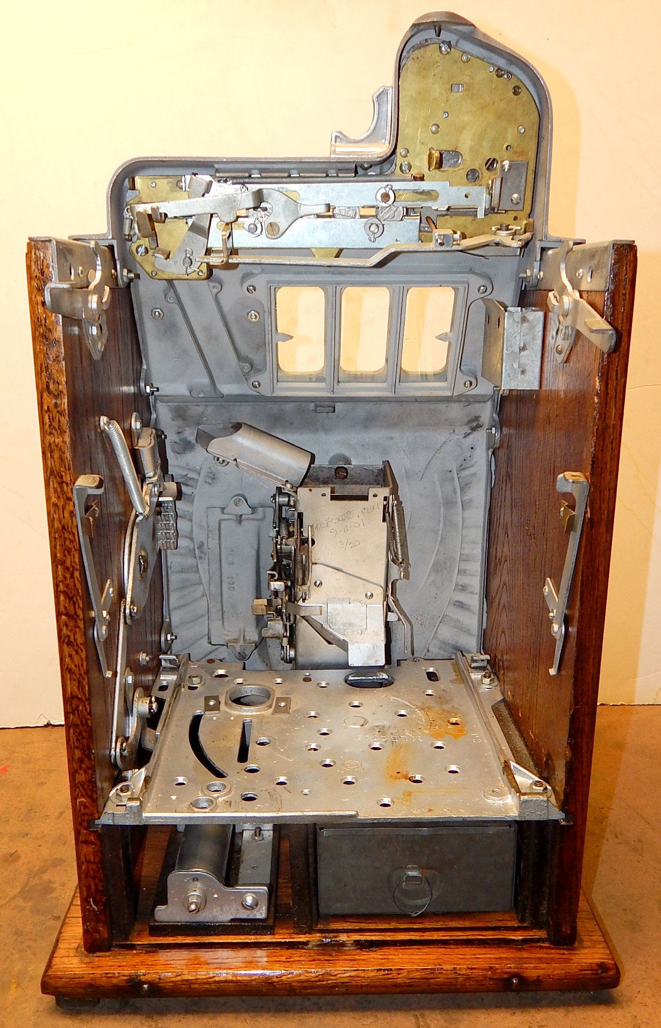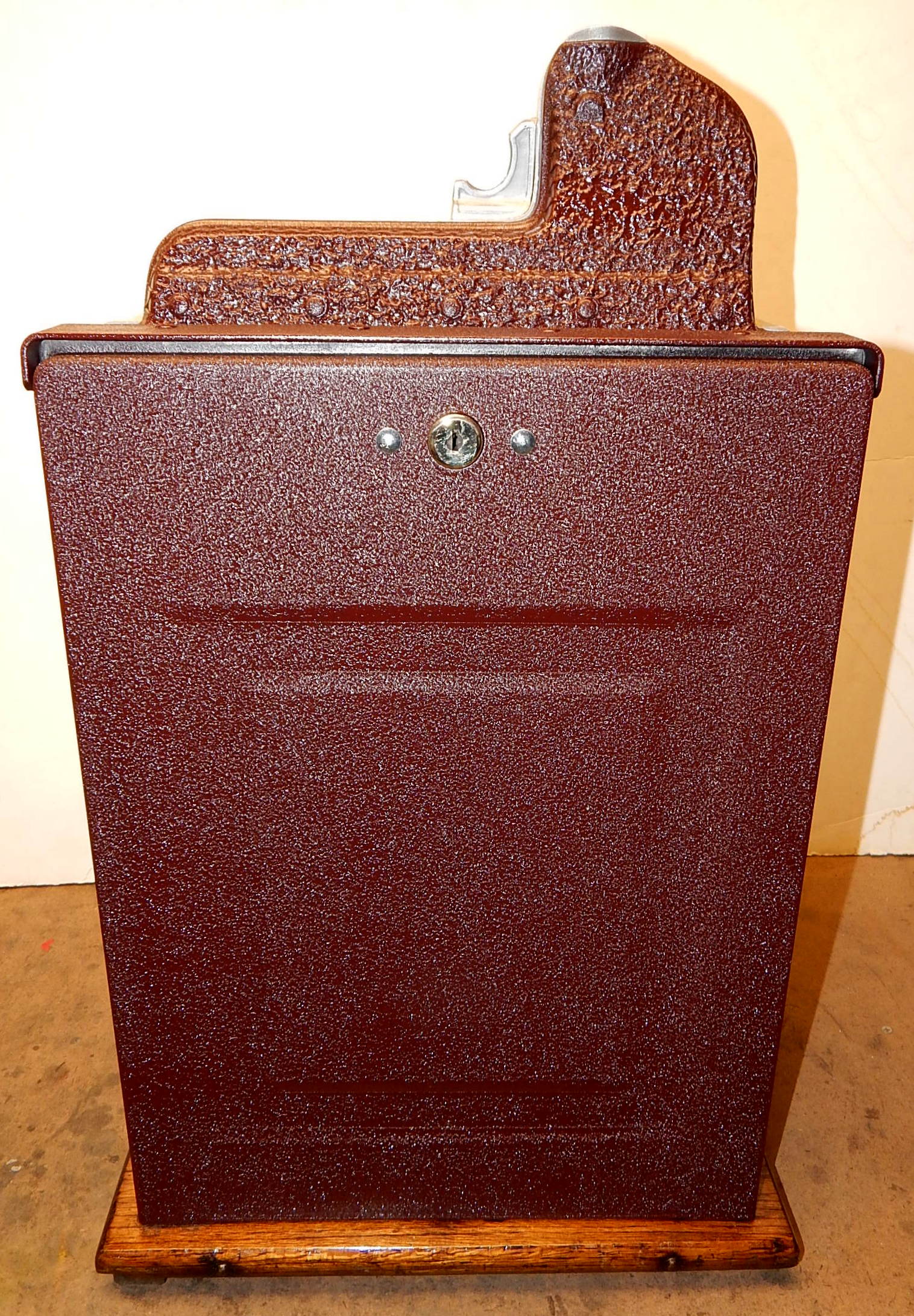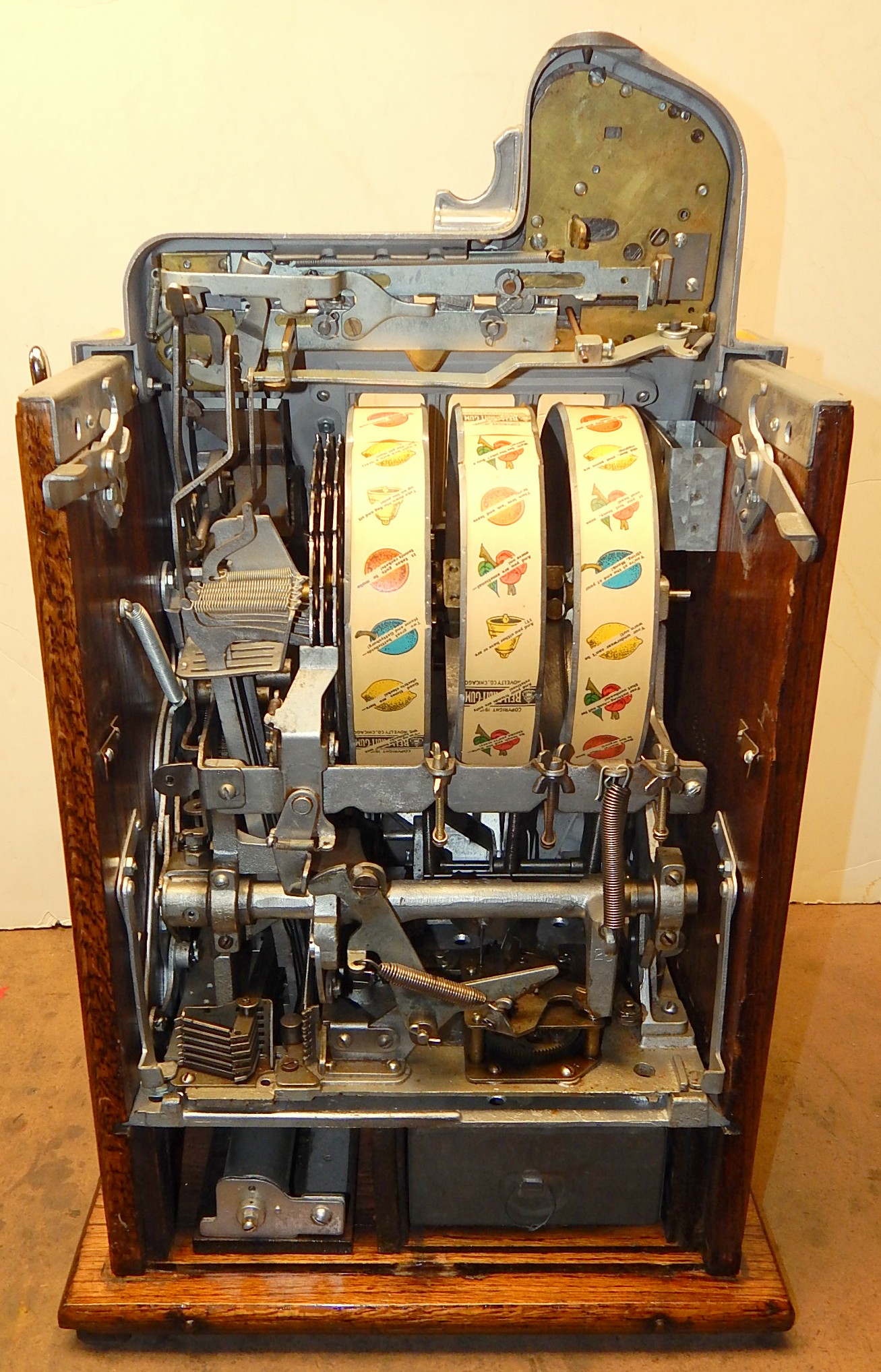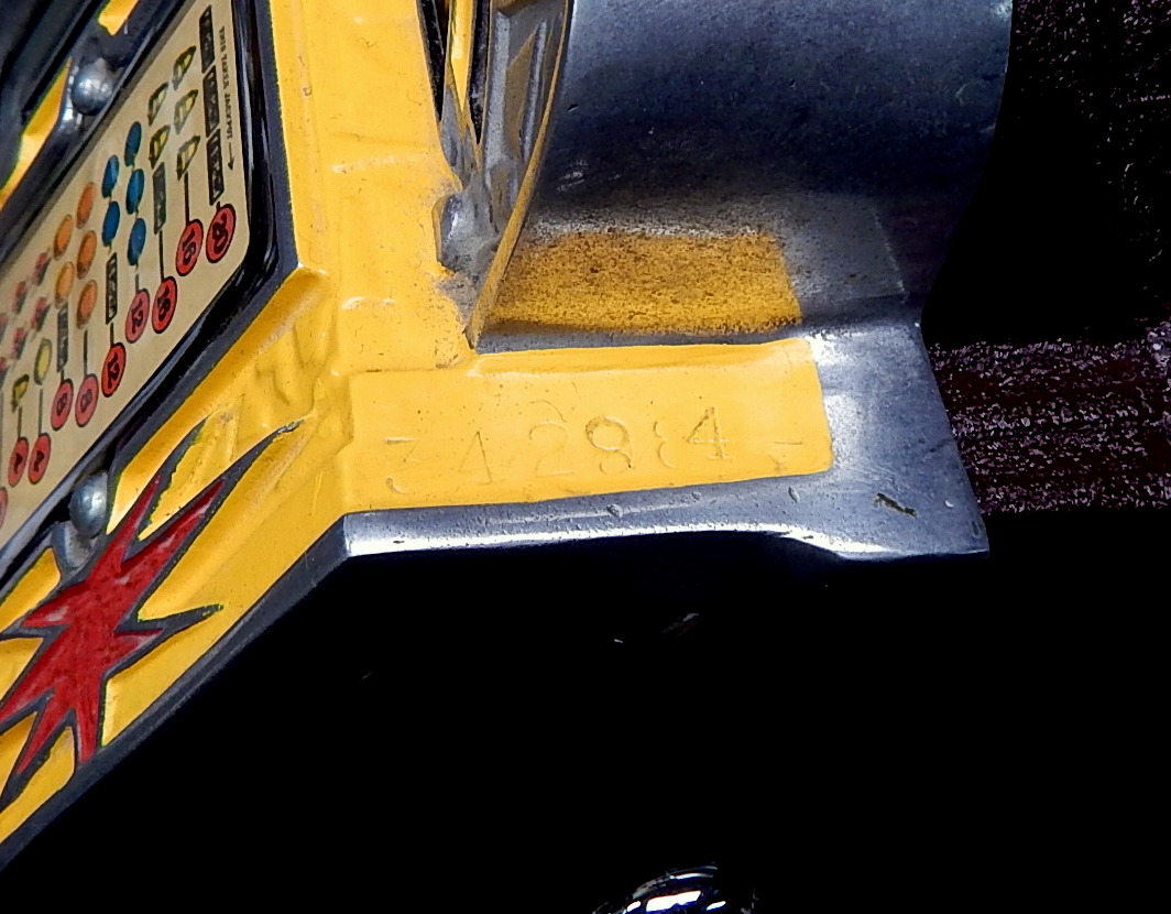 Mills 1933 War Eagle "Rock-ola"5 cent, previously restored back to the original colors, Yellow, Red , Black. Jackpot with reserve, original back door and lock with one key, original cash box, very nice oak cabinet. Plays very easy.