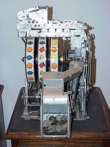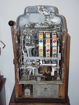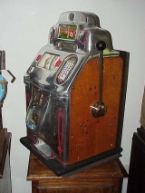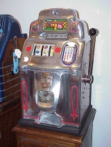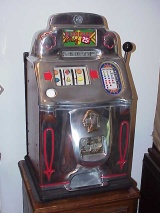 25 cent Jennings Standard Chief, with full funtion self feed Jack-Pot, Original mint condition Reel Strips. original back door , Cash box , original Jennings lock and Key # ODJ -2200. Plays very nice.