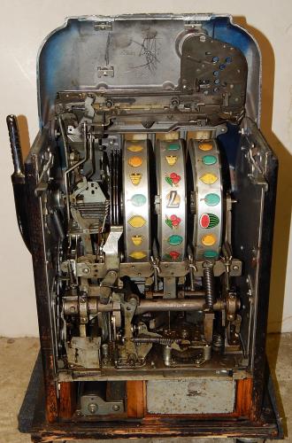 1948 Mills Hi-Top 7-7-7, 25 cent. Very nice original machine not restored, original cash box, original back door, original reel stripes. original Mills lock with one key. In line to be restored if not sold first as is.
