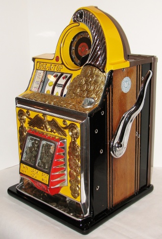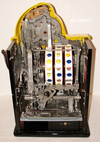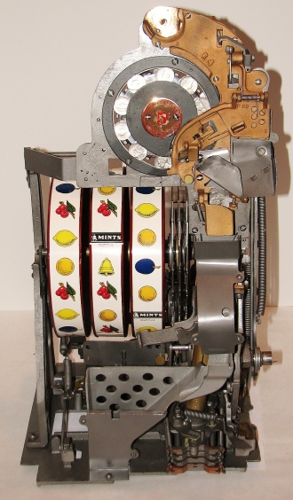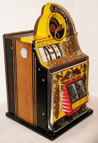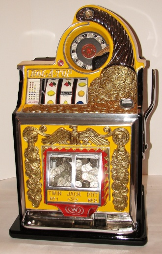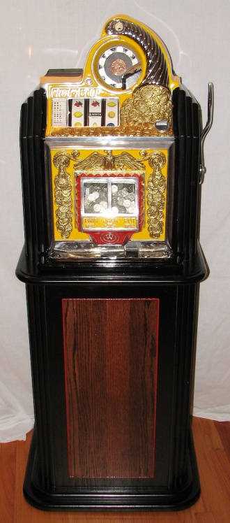 Watling 1935 Coin Front 5 cent with slide in console, restored with original reel strips, original back door, twin Jackpots, original cash box with lock and key, 3-5 pay out.