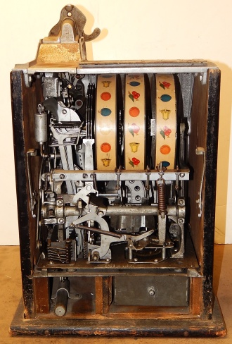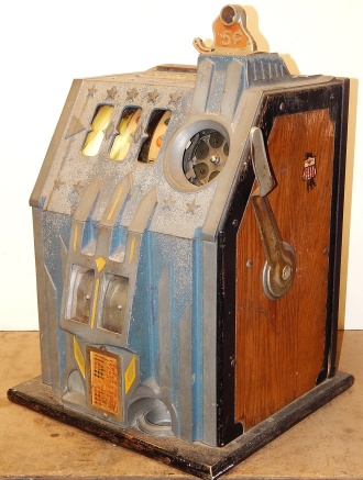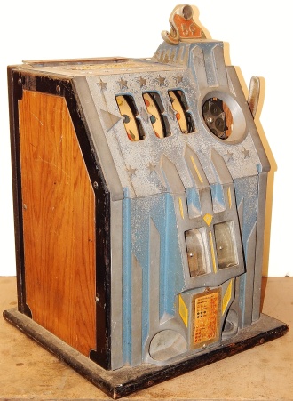 1936 Pace Comet 5 cent, In line to be restored but, up for sale as is. Original condition with original colors Blue, trimed in red and yellow. Original reel strips and award card. Original back door with original Pace lock and key. Original cash box, functional twin jackpots. Plays and pays as it should.