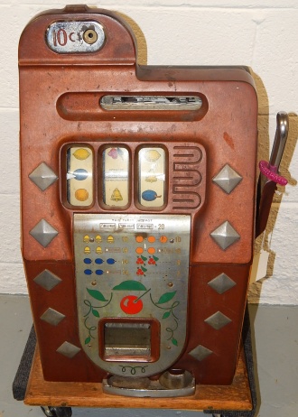 Mills 1941 Diamond Front 10 cent. original paint, jackpot, cash box, original back door.This is a very nice machine in line to be restored or sell as is..