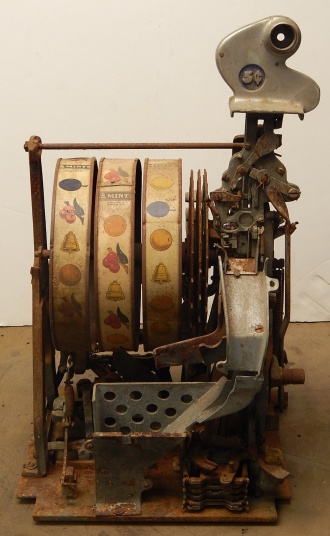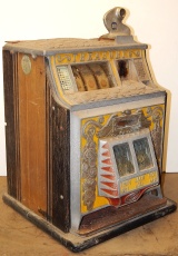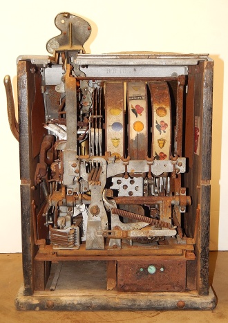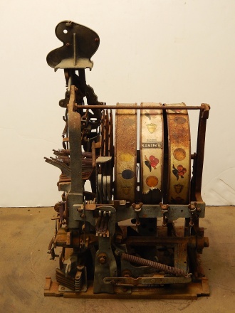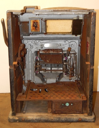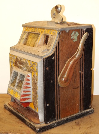 Watling 1933 Treasury 5 cent, with original reel strips, original back door with the original watling lock and key, twin Jackpots, cash box with lock and key. 3-5 pay out.