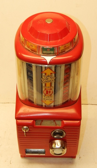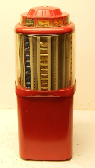 1954 Northwestern Tab Gum Machine Penny. Orignal comdition with original globe. Has ten column for ten different flavor of Tab gum. 7"1/2 wide, 9" deep, 19"1/2 tall. Northwestern Morris,ILL