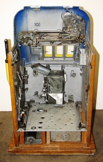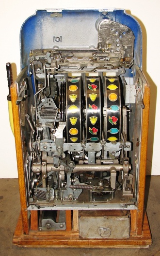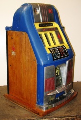 1950 Mills Hi-Top, 10 cent. Very nice original machine not restored, with Jackpot, original cash box, original back door, original reel stripes. original Mills lock with one key, oak cabinet. Play very easy and pays as it should.