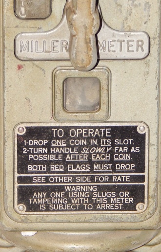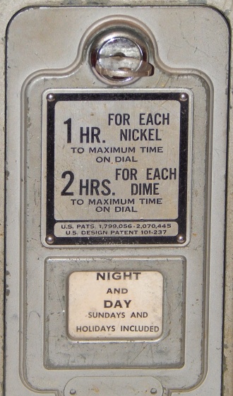 Parking Meter 5 cent. Original condition, works great. 18 inches tall. One hour for each nickel paid.