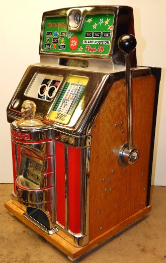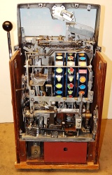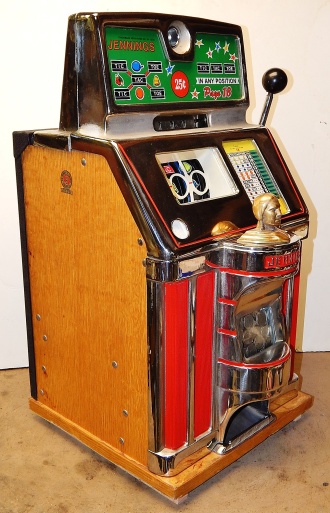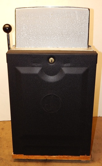 1948 Jennings Governor Tic-Tac-Toe, 25 cent. Chrome, trimmed in red. Very nice machine with original chrome, cash box, original back door with Yale lock and key, original plating. Award card and top marquee replaced by previous owner. This is not a "lite-up" machine. Plays very easy.