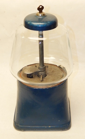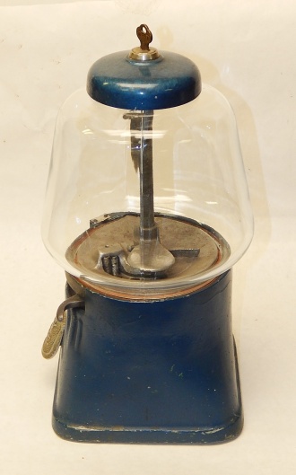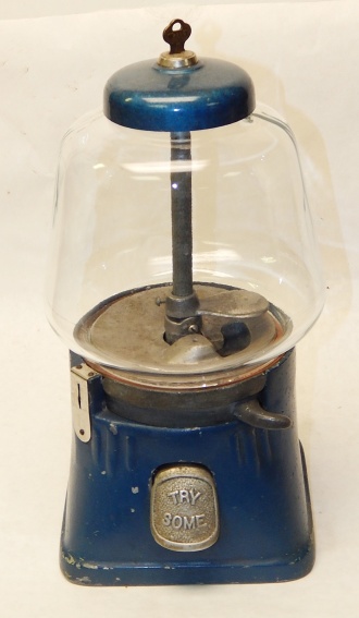 1946 Silver King Gumball vendor penny, with curved chute "Try Some", works fine, comes with lock and key.