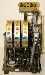 When the BONUS letters on the first reel come up in order, corresponding letters will appear at the top right of the machine. Once the entire word BONUS is spelled out, you win 18 coins. This was another way Mills would try to keep people playing longer and if you had almost all the letters showing, it was hard to walk away.