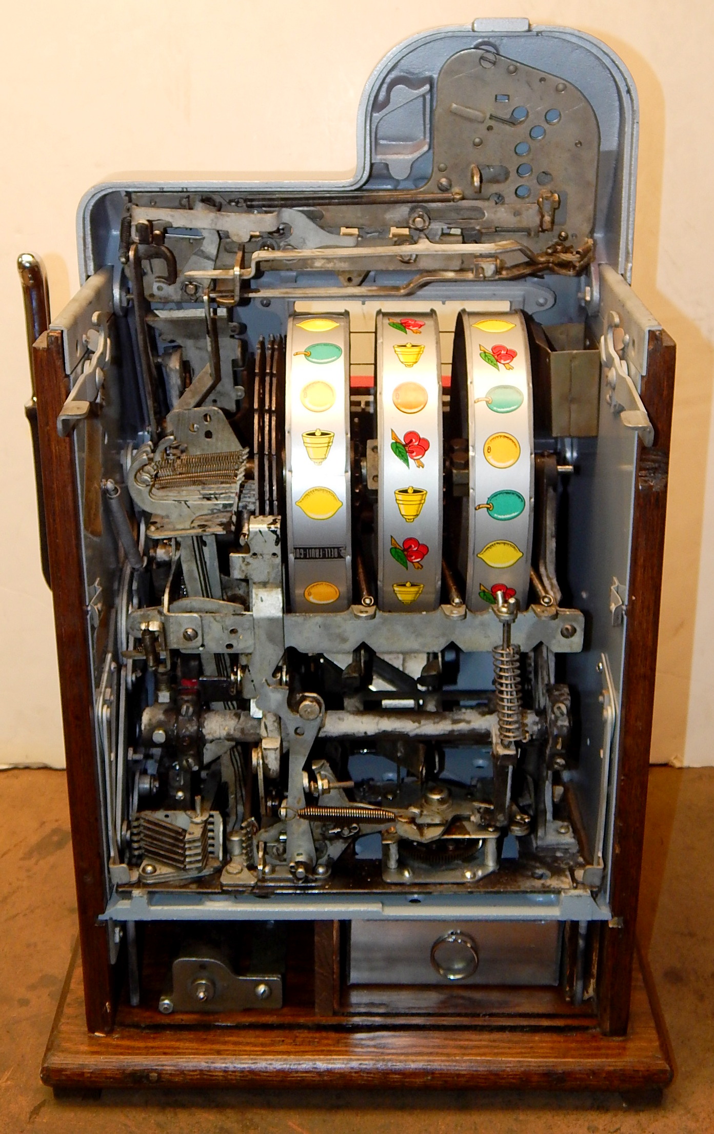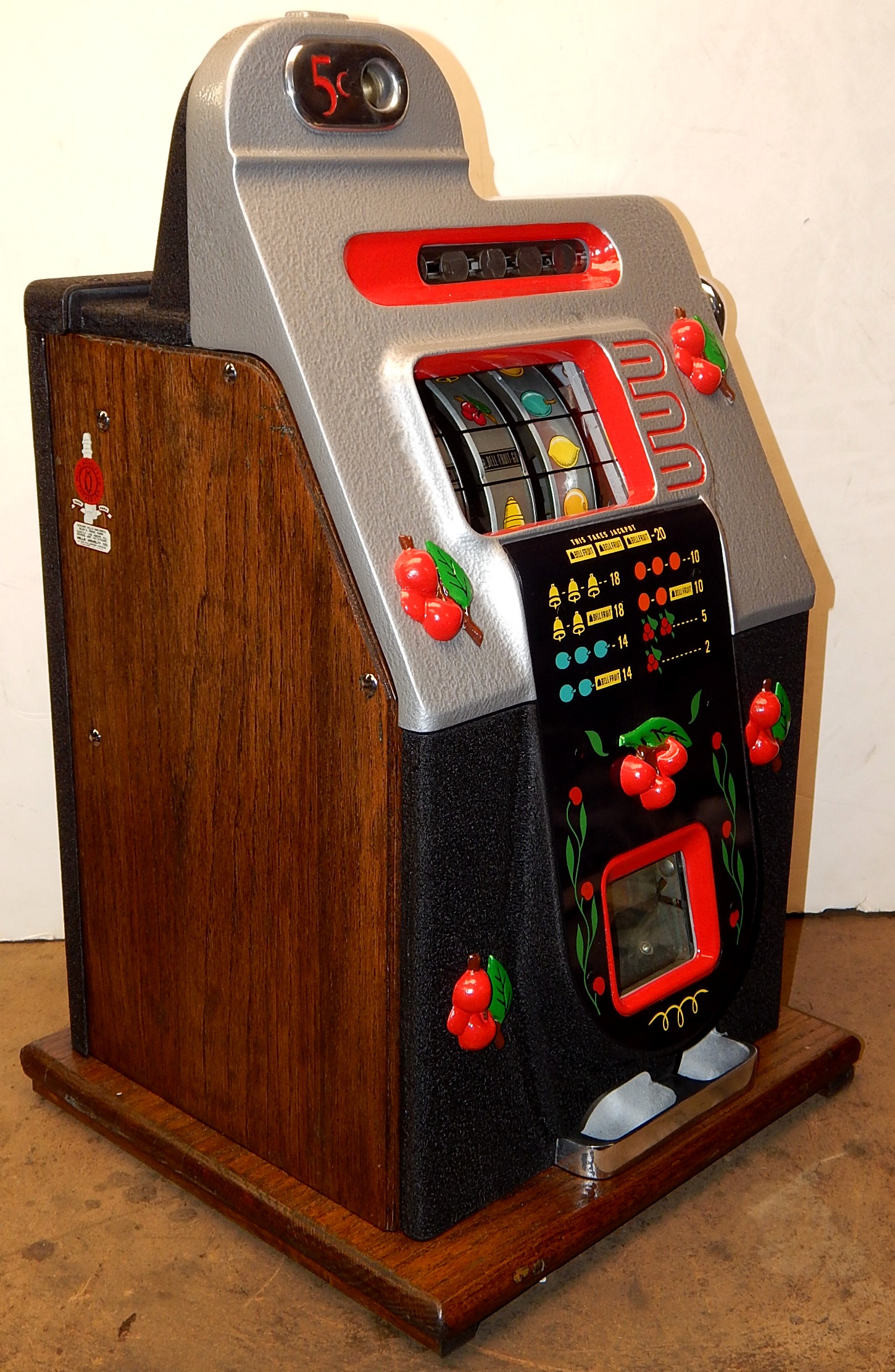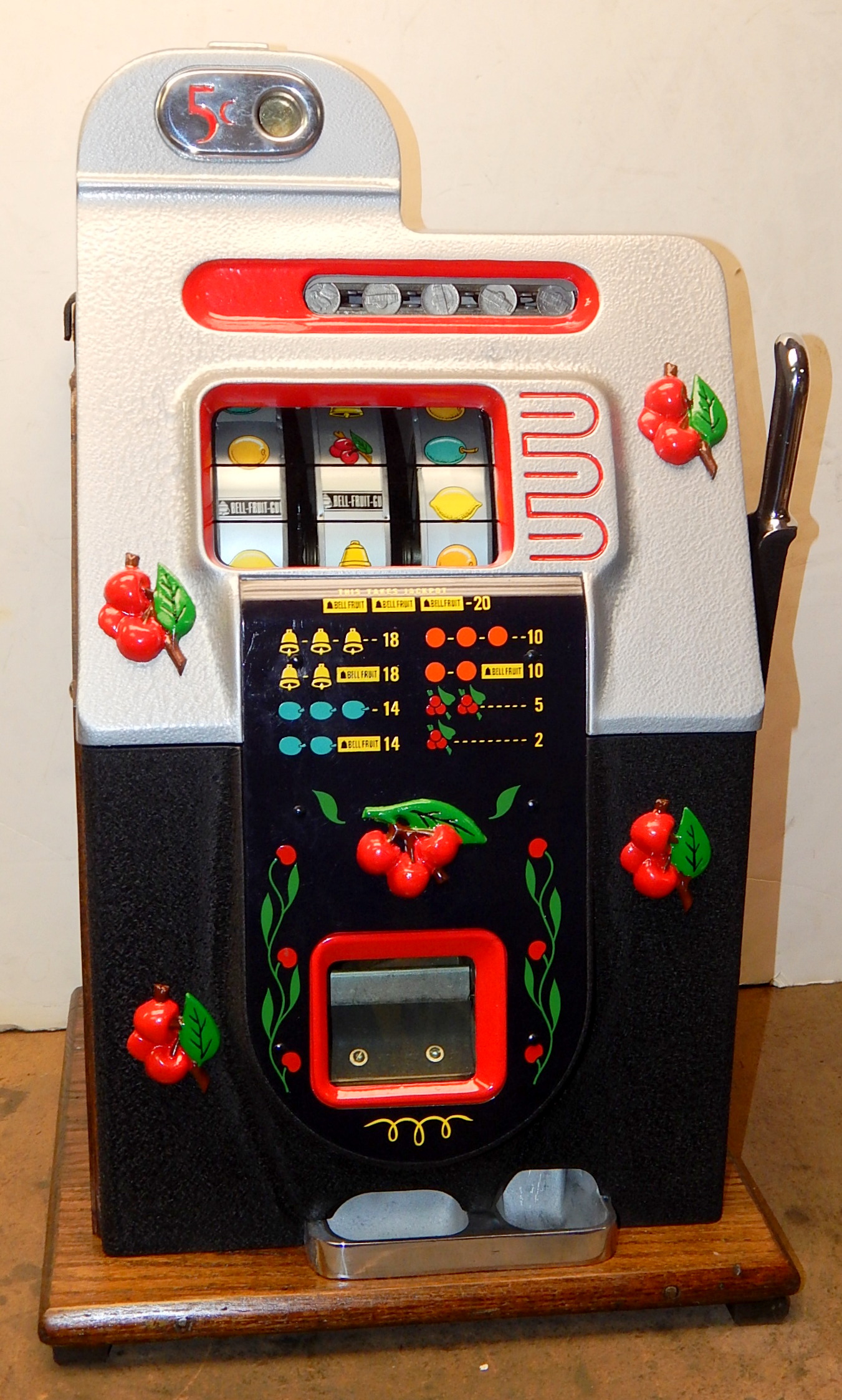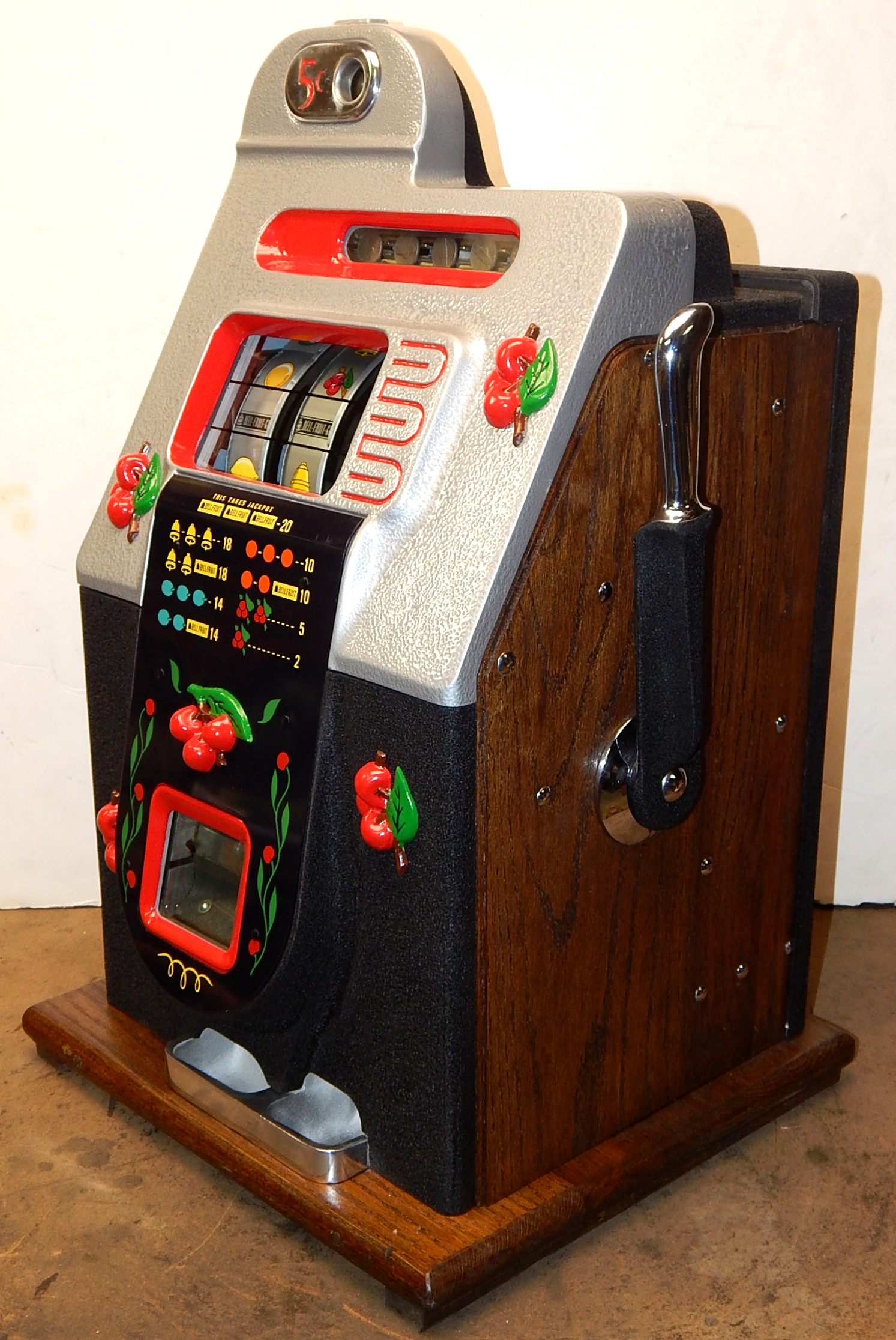 Mills 1947 Black Cherry 5 cent, . This is a very nice machine. restored back to the original colors. Jackpot with reserve. Plays very easy, 2-5 payout.