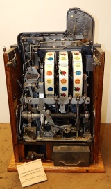1934 Mills Castle Front 5 cent, in original condition with Gold Award token vendor and four original tokens. Original reel strips with fortune. Jackpot and reserve, original back door, original lock with one key, original cash box, plays and pays as it should. Very easy to play.