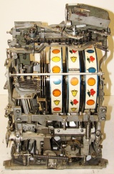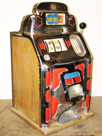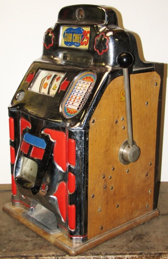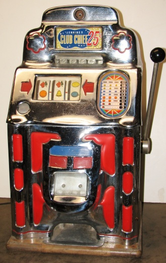 Jennings Super Due Luxe Club Chief, casting are a 7.5 out of a 10 not bad for a 63 years old machine. Has full funtion self feed Jack-Pot, original mint condition reel strips. original back door, cash box. This machine has lite-up casting. Plays very nice. If you are looking for a nice all original lite-up machine that has not been restored, here it is.