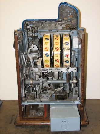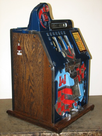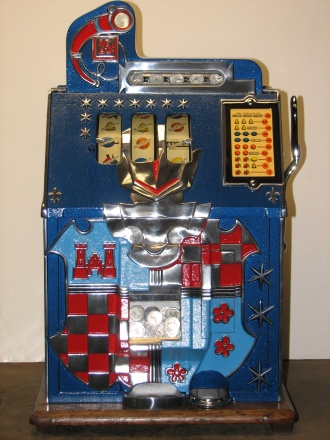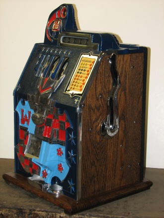 1934 Mills Castle Front 25 cent, in restored condition with working Jackpot and reserve, original Reel Strip in mint condition, original back door, original lock with one key, original cash box.