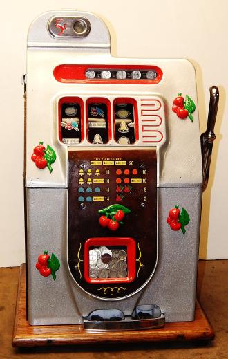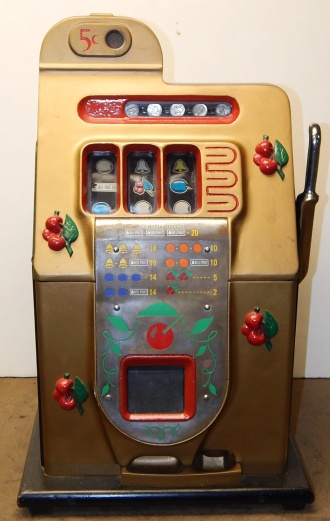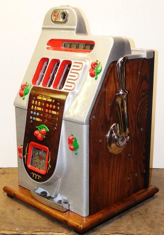 Mills 1947 Black Cherry 5 cent, . This is a very nice machine. restored back to the original colors. Jackpot with reserve. Plays very easy, 2-5 payout.