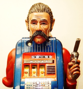 "Bad Bart" carving, this is a Dick Delong Craving added the this Mills Jewel bell to make this a true meaning of a One bandit.