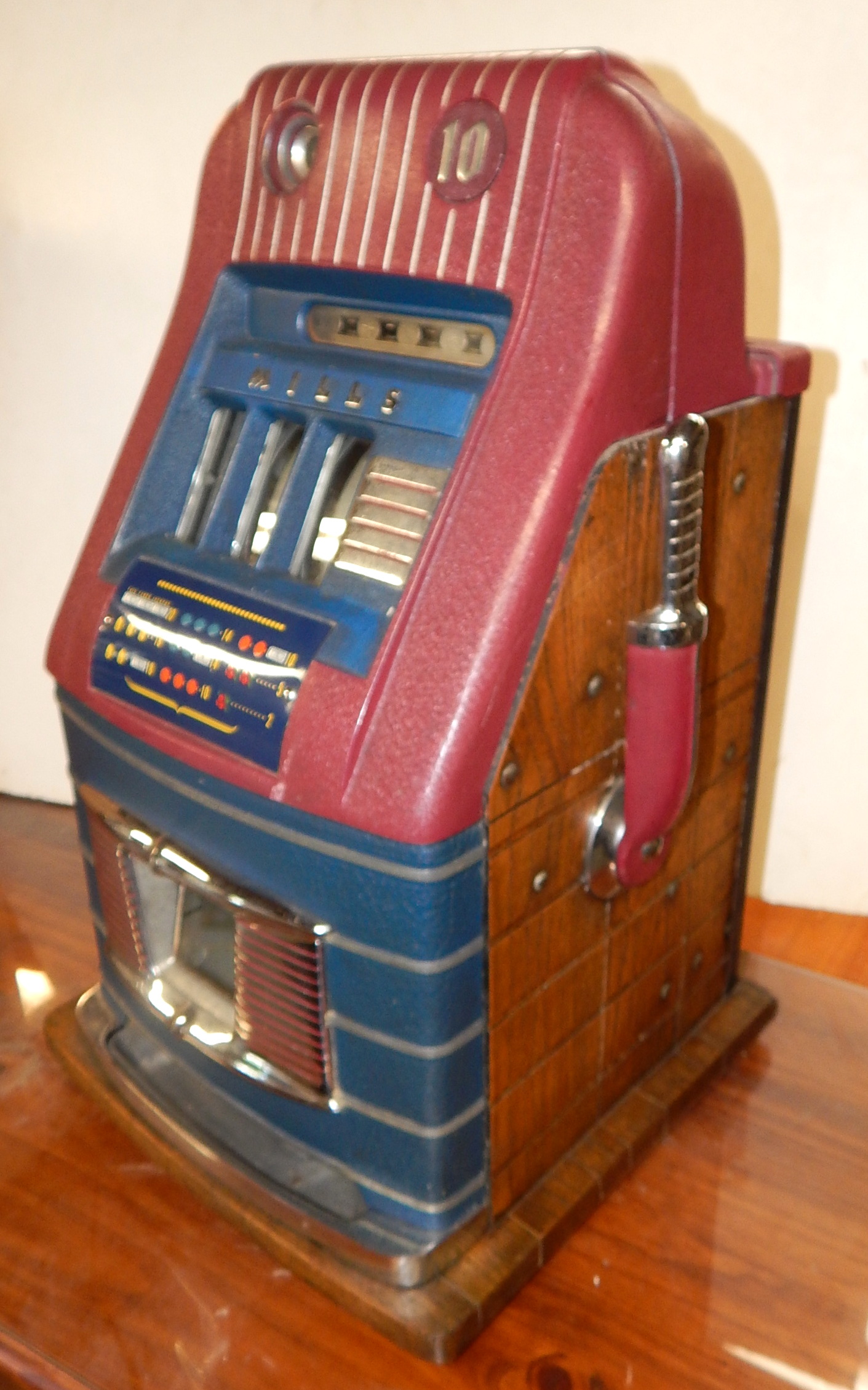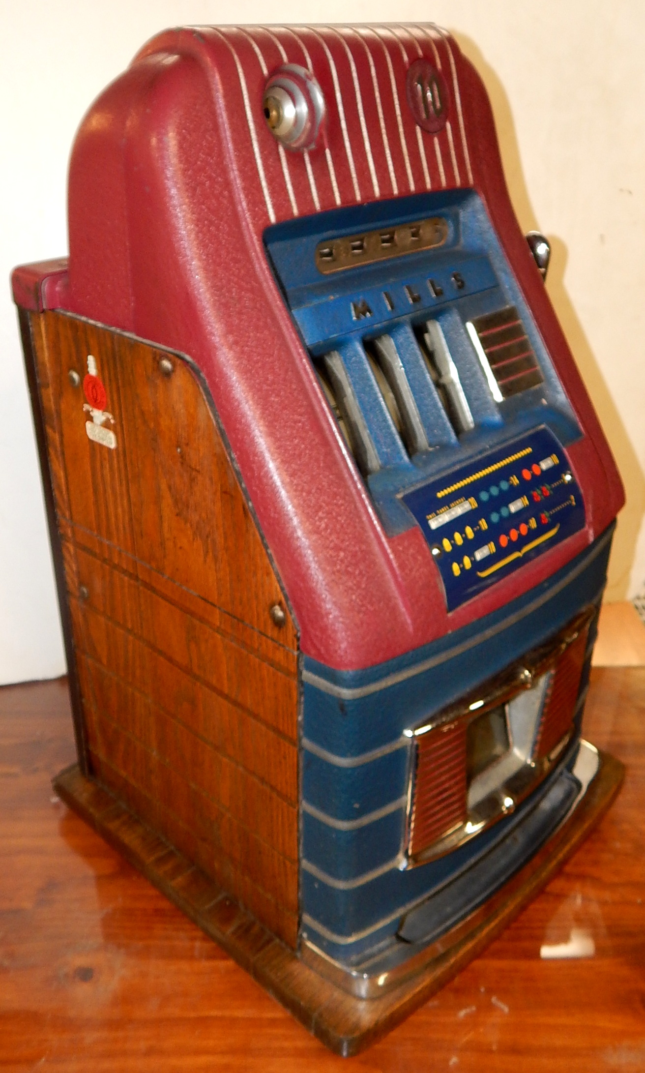 Mills 1947 Jewel Bell Hi-Top 10 cent, This is a very nice machine. Original condition "Not Restored" original award card, reel strips, original back door with lock, original cash box. Plays very easy. 2-5 payout