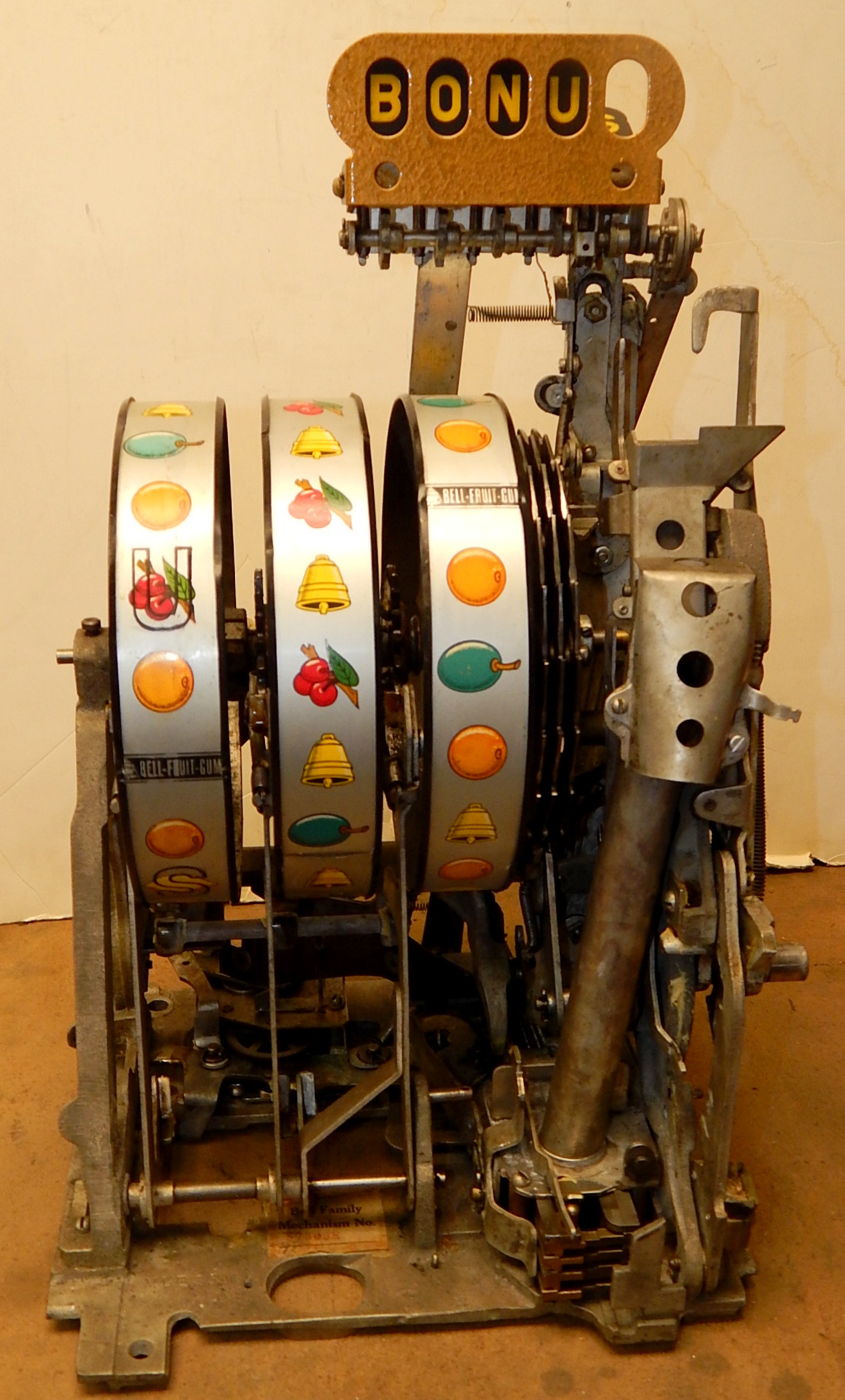 When the BONUS letters on the first reel come up in order, corresponding letters will appear at the top right of the machine. Once the entire word BONUS is spelled out, you win 18 coins. This was another way Mills would try to keep people playing longer and if you had almost all the letters showing, it was hard to walk away.