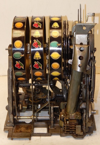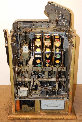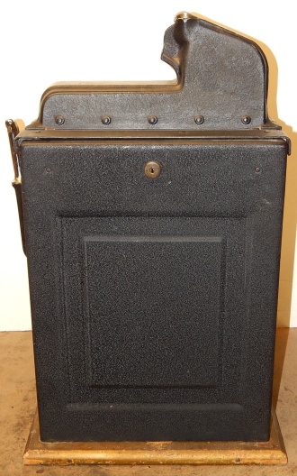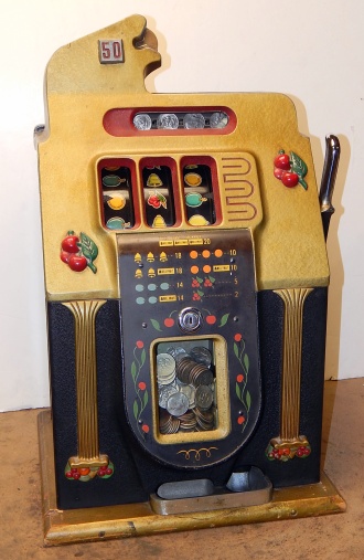 1946 Mills Golden Falls, 50 cent. in original condition with original colors hammer tone Gold, wrinkle Black trimmed in Red. Front hand load Jackpot with Mills lock and key, original back door with original Mills back door lock one key, original cash box, very nice oak cabinet. Plays very easy. If your looking for a very nice all original condition machine, here you go the way you want to find them. Plays very easy.