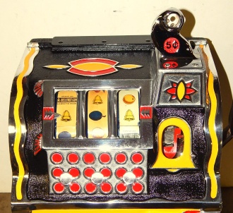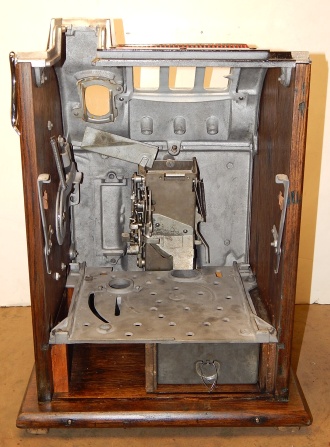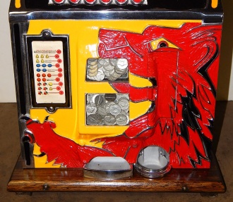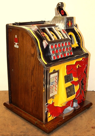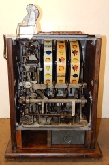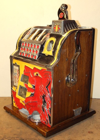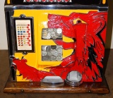 1932 Mills Lion Head 5 cent. Restored back to it's original colors. "Polished not plated". Original cashbox, original metal reel strips, award card, back door with lock and key. The only thing that is not original on the machine is the paint and decal, plating of the handle and coin head. Plays very easy and pays as it should.