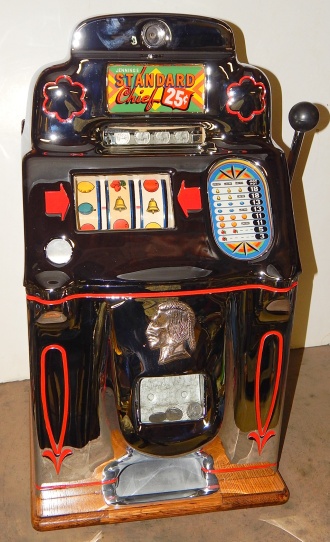 1947 Jennings "Chrome" Standard Chief 25 cent, a very nice machine. The chrome plating on this machine is a 10 out of 10, just beautiful.  Everything on this machine is original but, the new chrome plating. Original cash box, back door. 3-5 payout