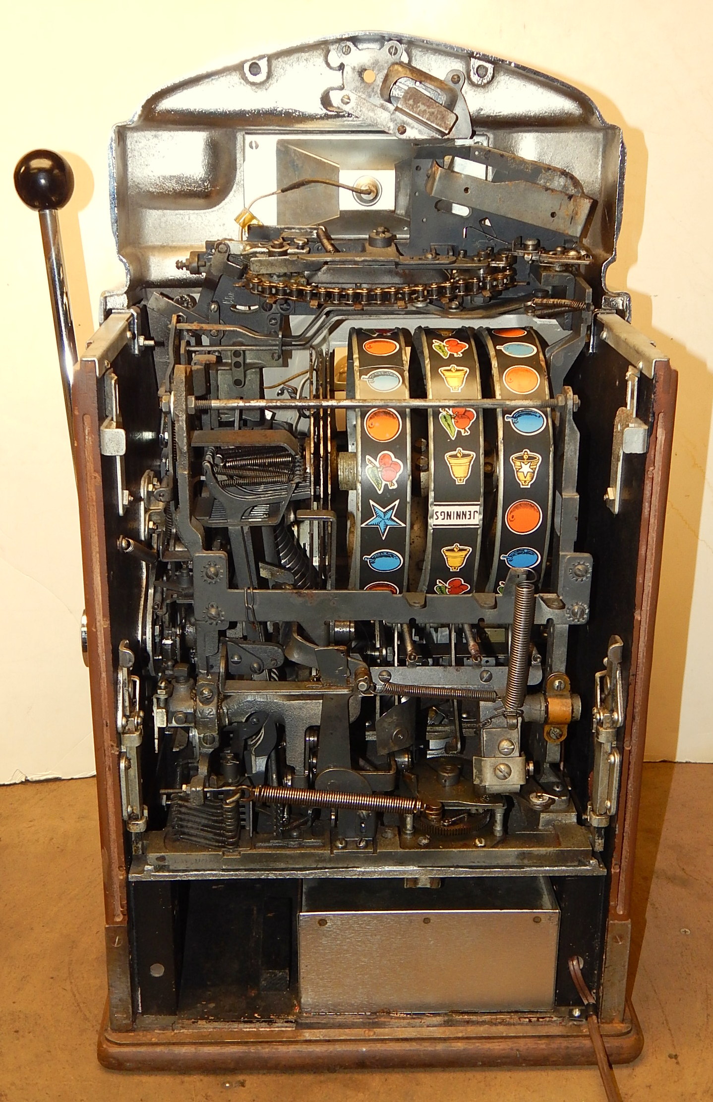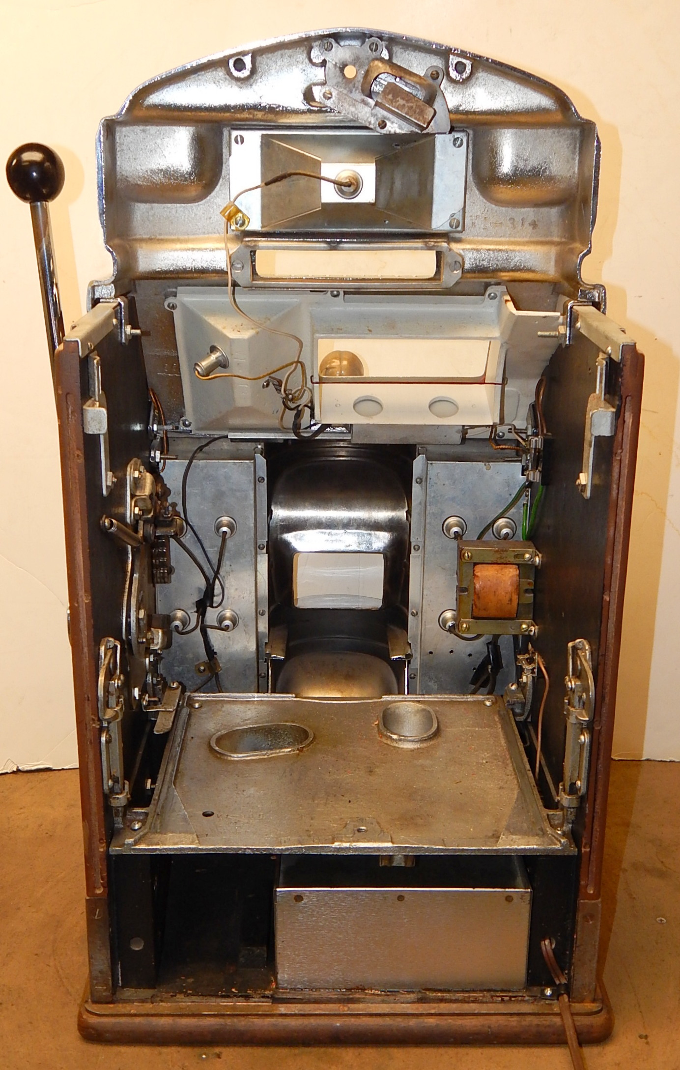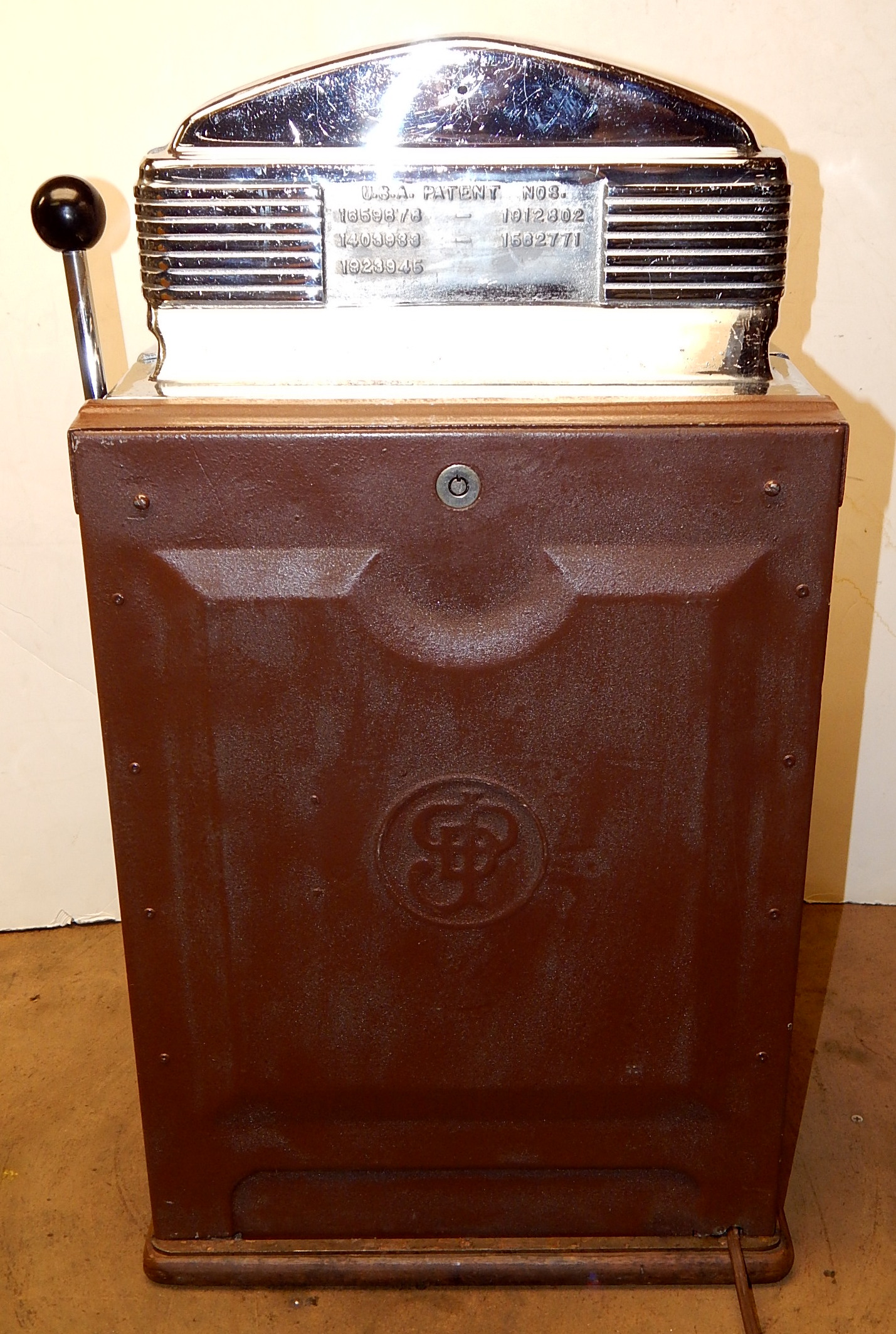 1949 Jennings "Sun Chief Light-Up" Five Star, 25 cent. with hard to find GREEN plastic. Chrome on this machine is 9 out of 10. Original reel strips, new cash box, very nice cabinet. This Sun Chief has five different jackpots.