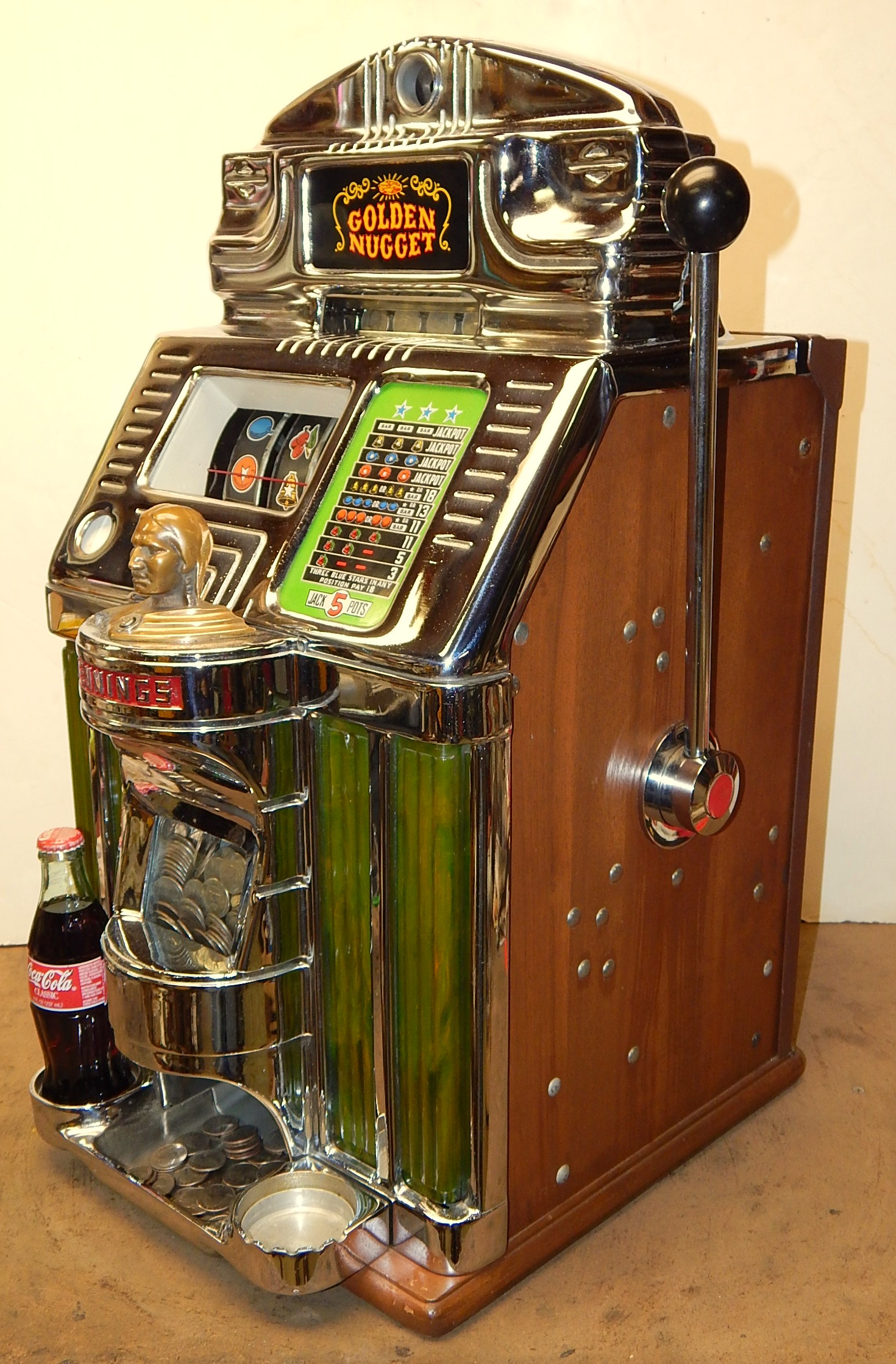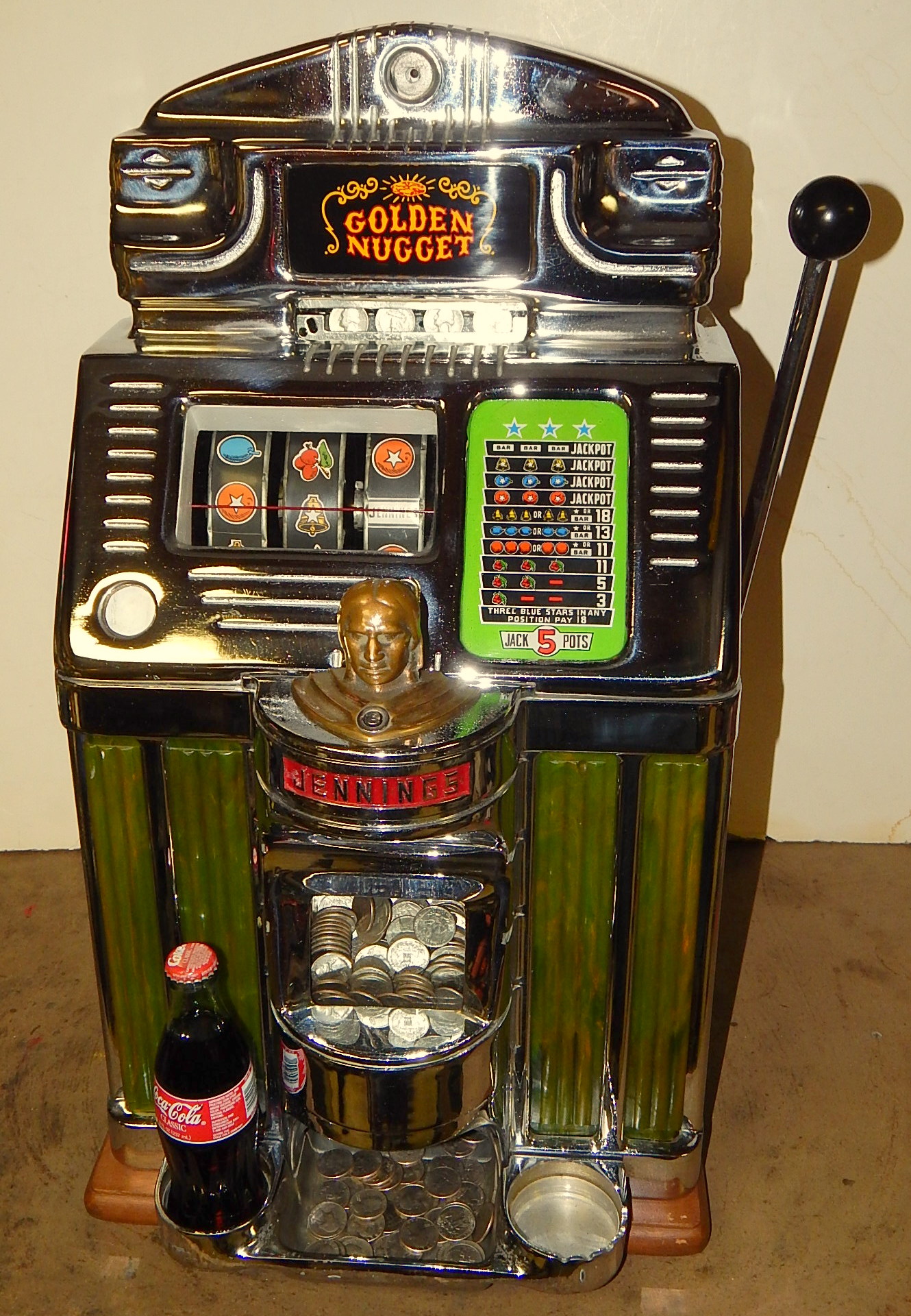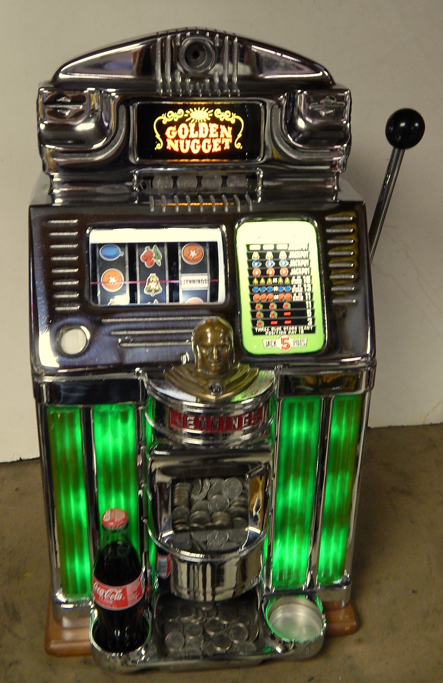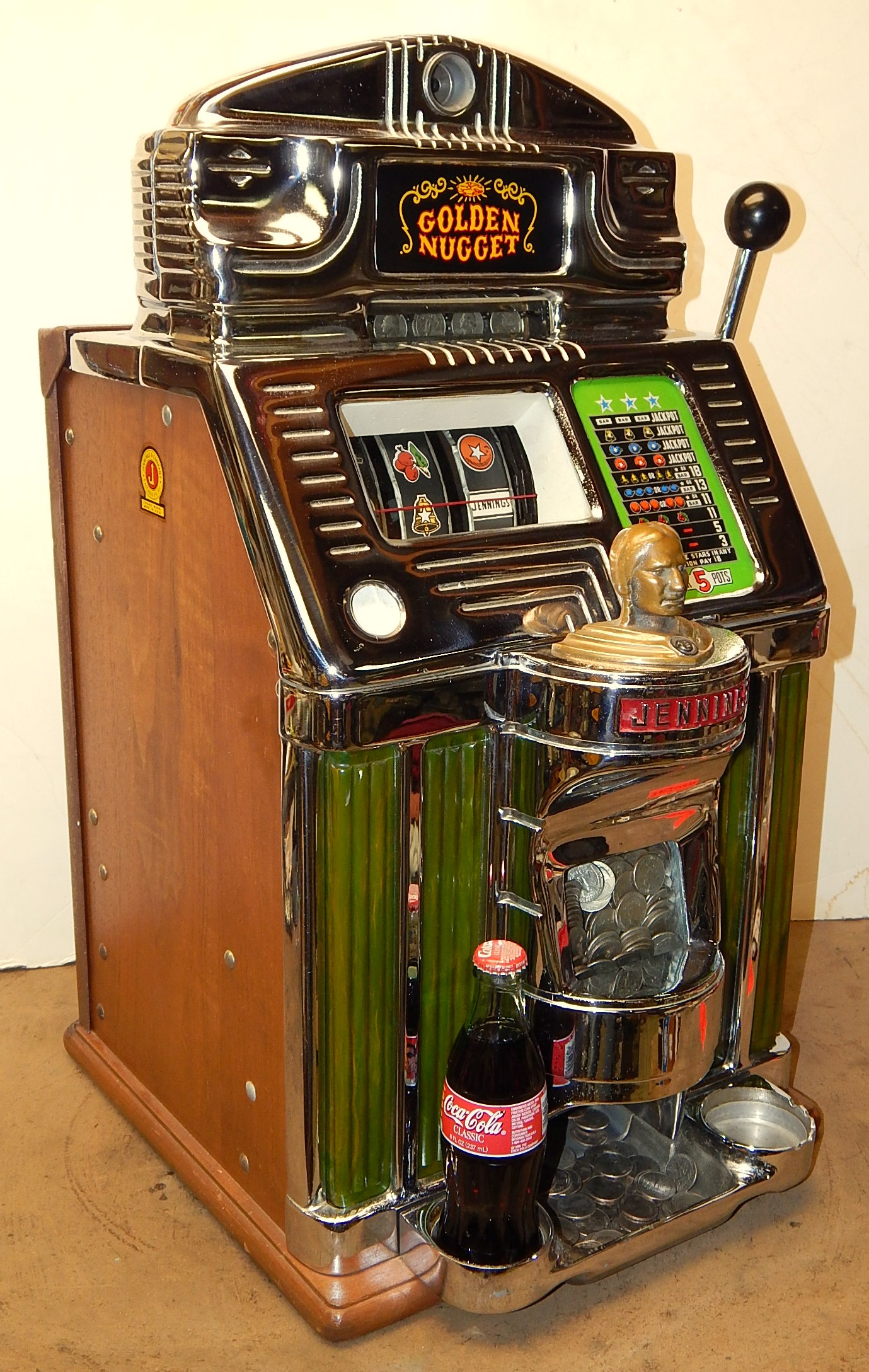 1949 Jennings "Sun Chief Light-Up" Five Star, 25 cent. with hard to find GREEN plastic. Chrome on this machine is 9 out of 10. Original reel strips, new cash box, very nice cabinet. This Sun Chief has five different jackpots.