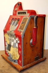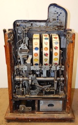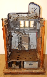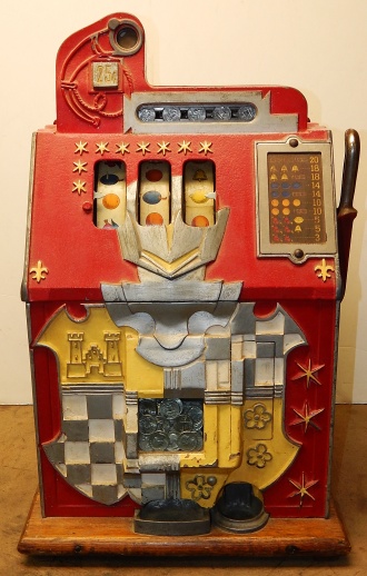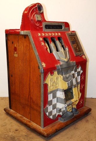 1936 Mills Castle Front 25 cent, with working Jackpot and reserve, original Reel Strip, original back door, original lock with one key, cash box. Play easy. In line to be restored.