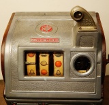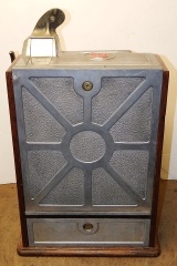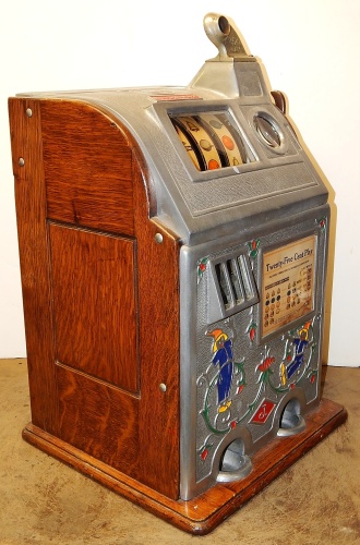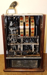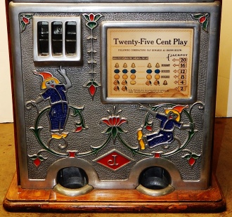 1930 Jennings blue Boy 25 cent. This machine has original cash box, Jennings back door, original reel strips.