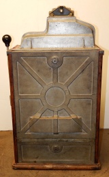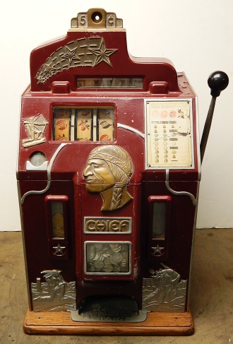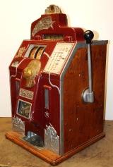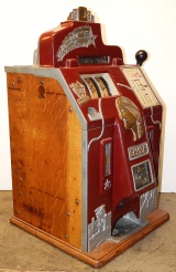 1935 Jennings "4 Star" Improved Chief prosperity, 5 cent. with token vendor with tokens Oak cabinet, original cash box, original back doors, original reel stripes. Original locks on both back door with 3 ODJ keys.