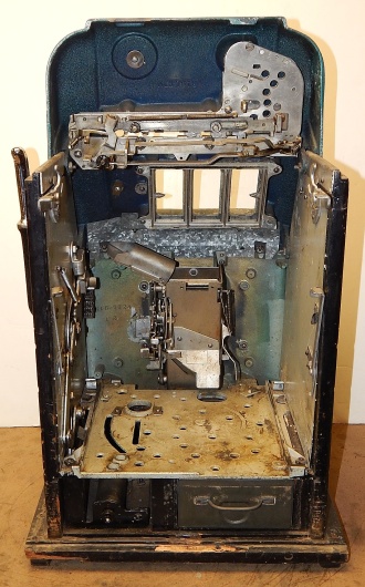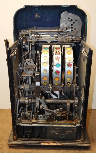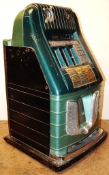 Mills 1949 " 7-7-7 " Hi-Top 5 cent, This is a very nice original machine, gloss green, cash box, original back door, jackpot with reserve, origiinal reel strips, very nice cabinet. Plays very easy, 2-5 payout. In line to be restored