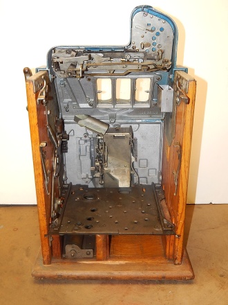 1938 Mills Castle Front 5 cent, in original condition with working Jackpot and reserve, original back door, oak cabinet, original cash box, In line to be restored. 3-5 Pay out