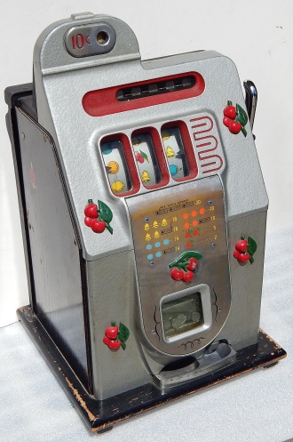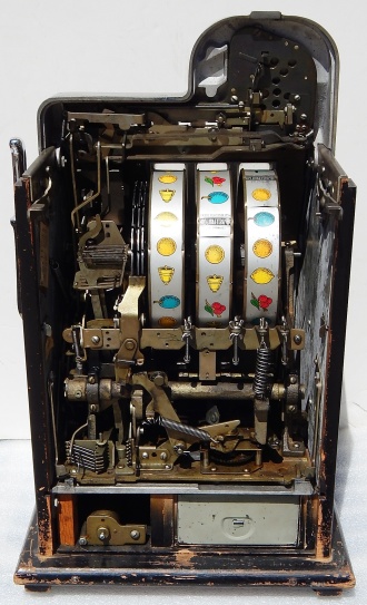 Mills 1946 Black Cherry 10 cent. "All original condition not restored" This is a very nice untouched original machine. Original back door with original Mills Lock and original Mills key. Jackpot with reserve. Plays very easy. If you are looking for an all original condition machine, here's the way you want to find them.