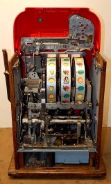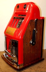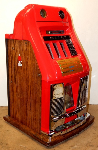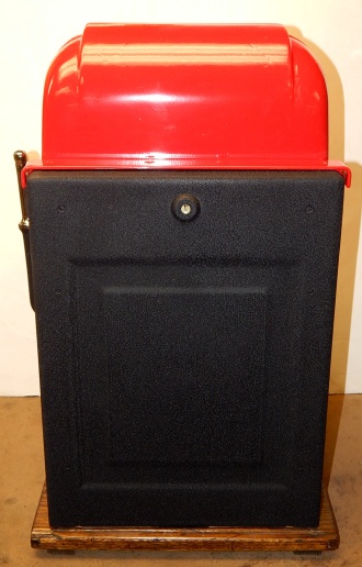 Mills 1959 "7-7-7" Hi-Top $1.00, This is a very nice hard too find large coin machine restored. Casting powder coated gloss red, trimmed in black. The trim on this machine has been chrome plated to add to this beautiful machine. New award card, original back door with Mills lock, new cash box, new reel strips. Comes with 100 dollar tokens. Plays very easy.