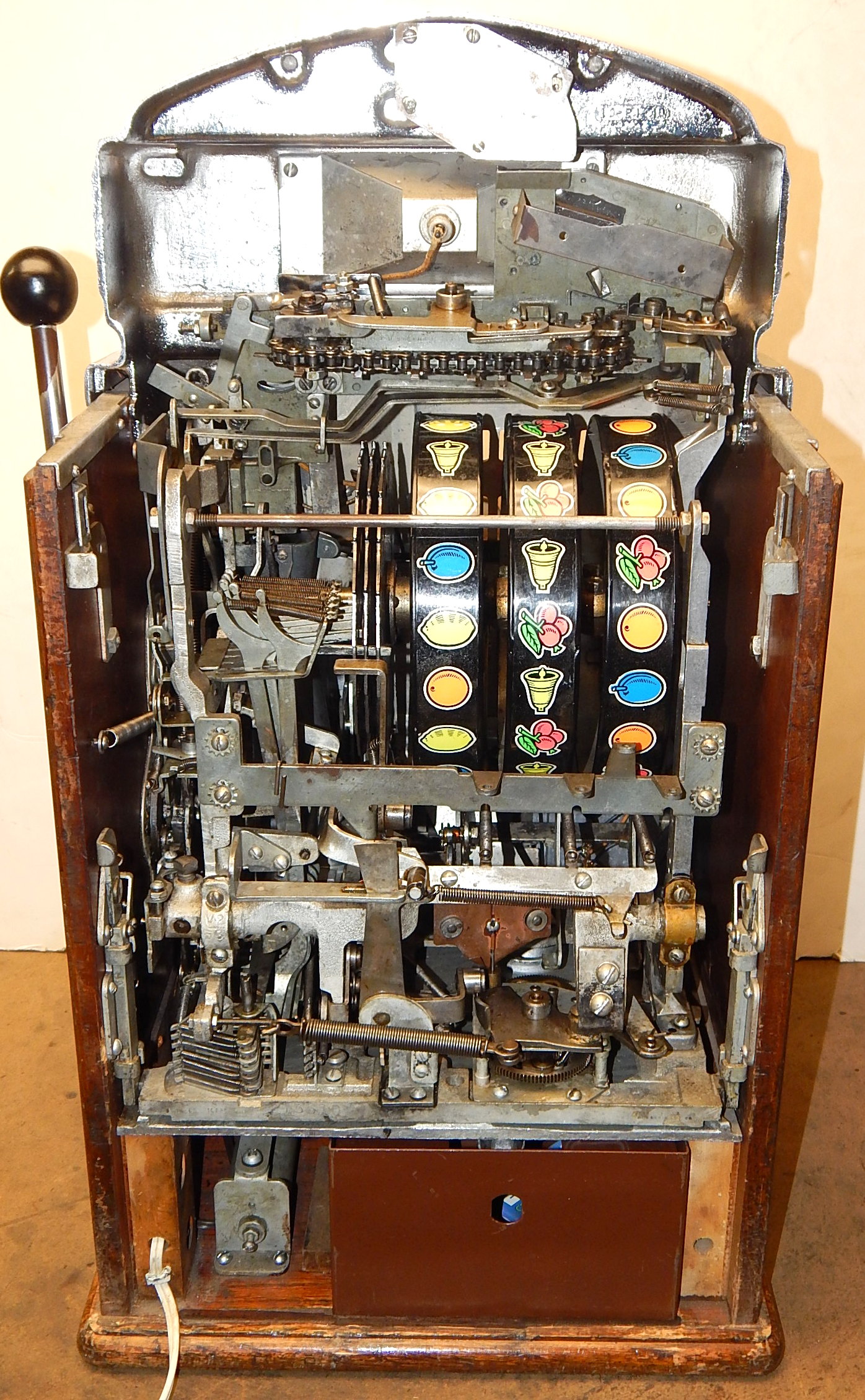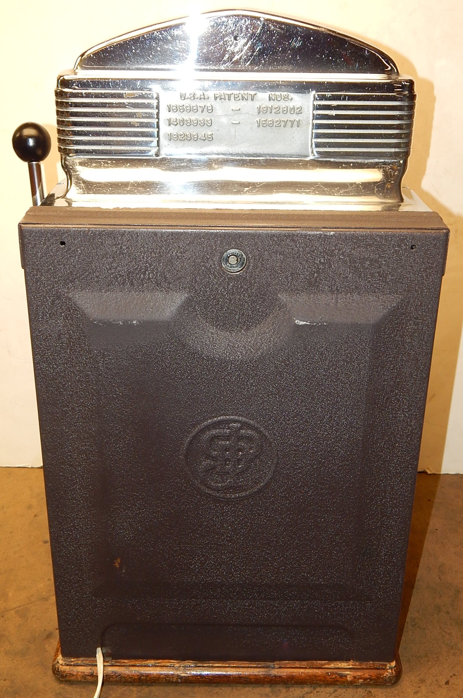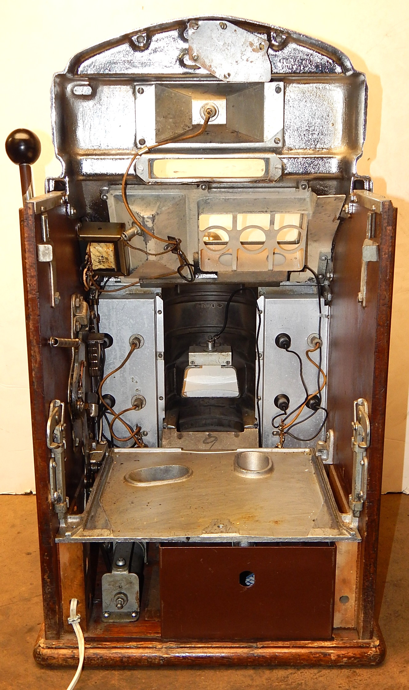 1964 Jennings Club Chief (lite-up) 25 cent, with the hard to find Glass and Ash tray money bowl. Functioning jackpot, original back door with lock and key. Has red plastic at the bottom. The chrome plating on this machine is 9 out of an 10. The machine plays very easy and pays as it should.