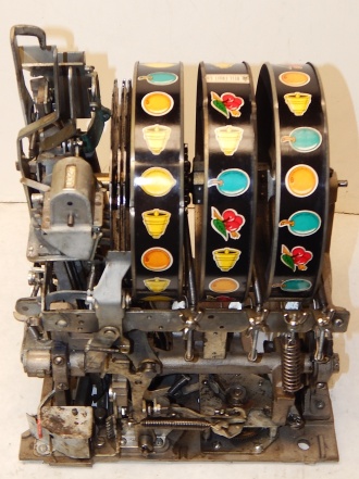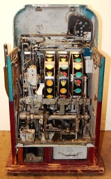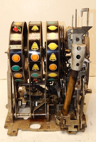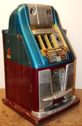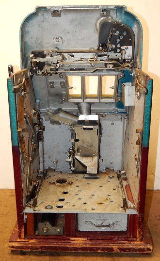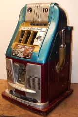 Mills Black Beauty 10 cent, in original condition, original reel strips, front load Jackpot, original back door, original cash box, all locks are Mills locks with one key. Front loader lock and back door locks are keyed alike. If you are looking for a nice original machine untouched here you are. This machine has been cleaned, lube and adjusted . Ready for many years of trouble free play.