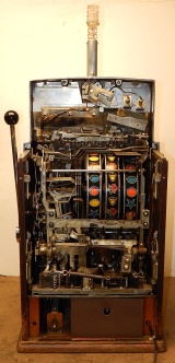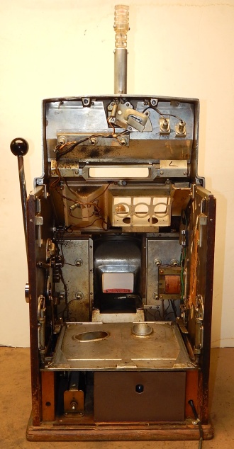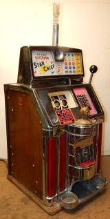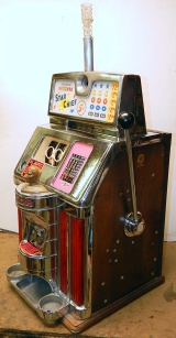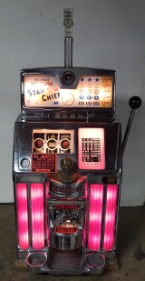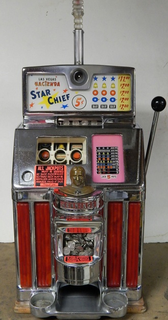 1959 Jennings Govenor Star Chief "Hacieda" 5 cent "Light-Up" from Las Vegas Casino. This machine is in the same condition all original, as it was when it was operated in the Las Vegas Hacieda Casino. Still has all the stickers and labels along with the lights on the out side and inside. Front load Jackpot with key. Five ways to hit the Jackpot including super Jackpot. Super nice machine from Las Vegas. A little history on the Hacieda Casino; The Hacienda Ressort Hotel and Casino was on the Las Vegas strip in Paradise, Nevada, that operated from 1956-1996