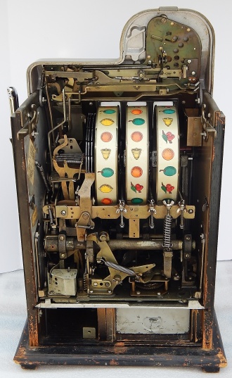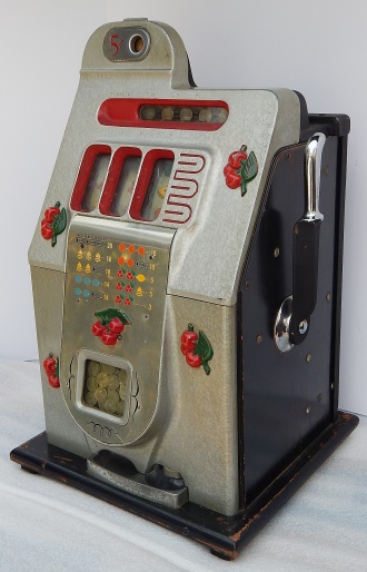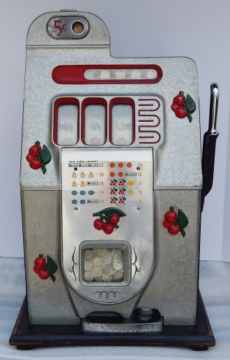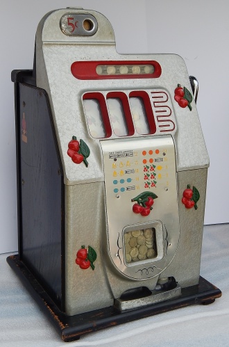 Mills 1945 Black Cherry 5 cent. "All original condition not restored" This is a very nice untouched original machine. Original back door with original Mills Lock and original Mills key. Jackpot with reserve. Plays very easy. If you are looking for an all original condition machine, here's the way you want to find them.