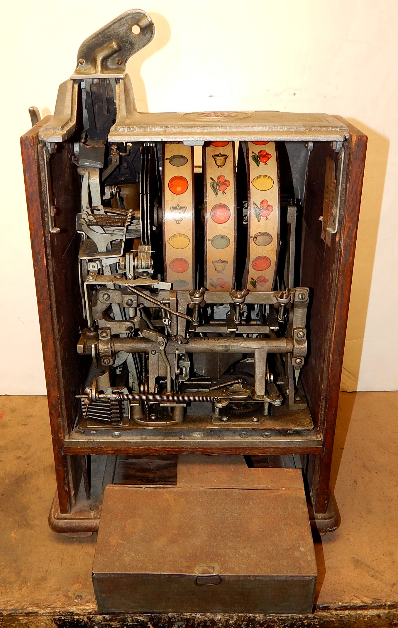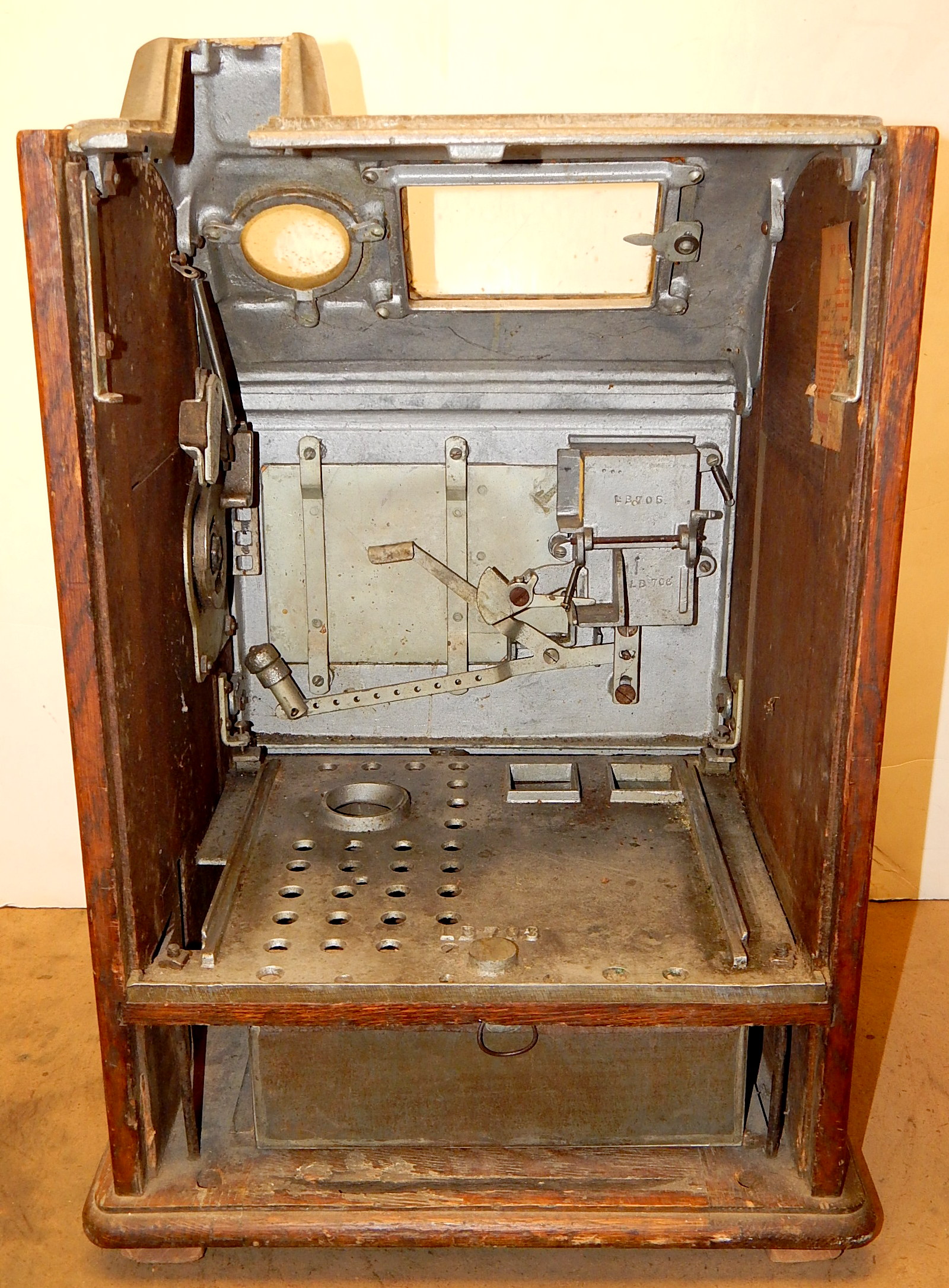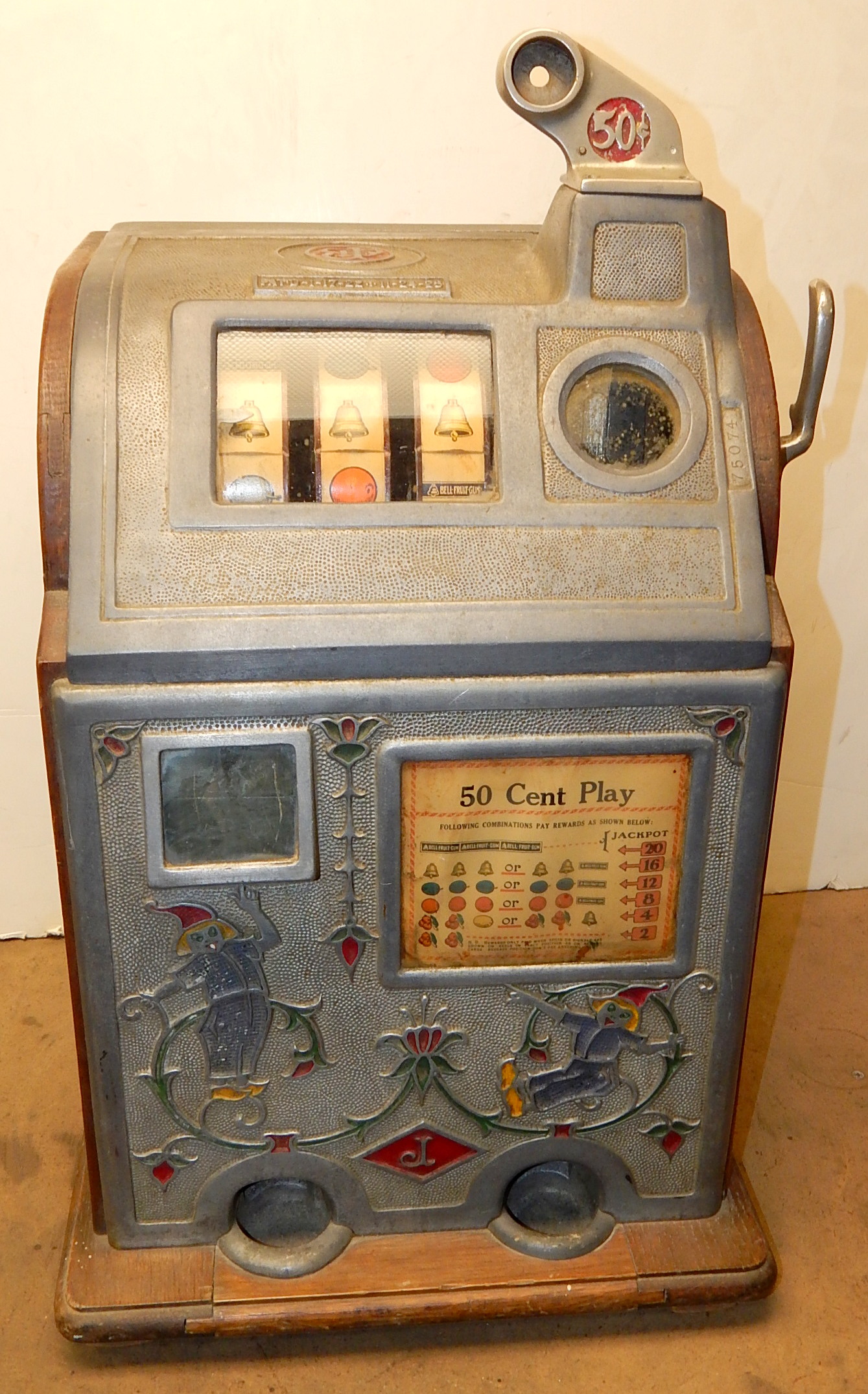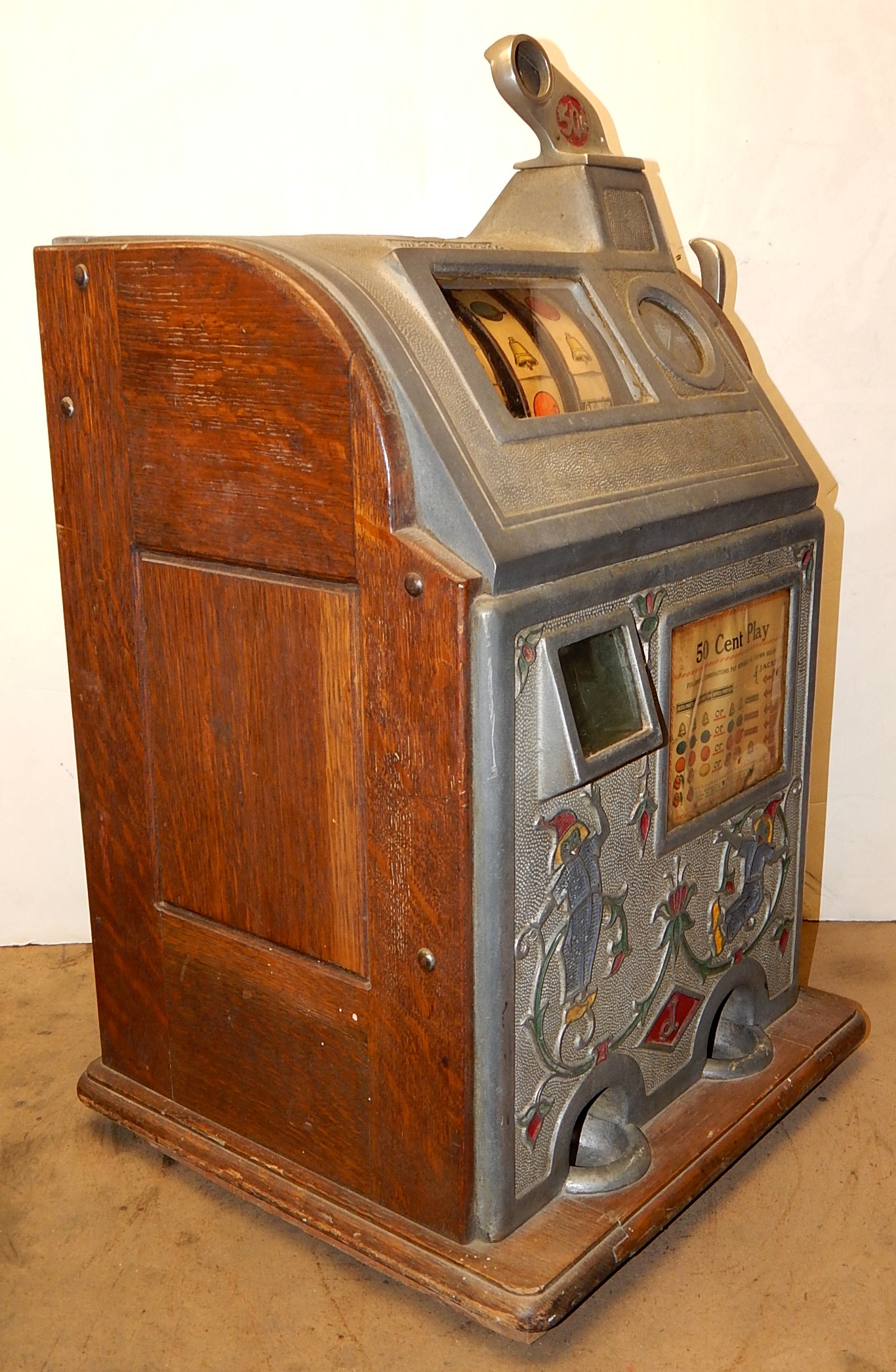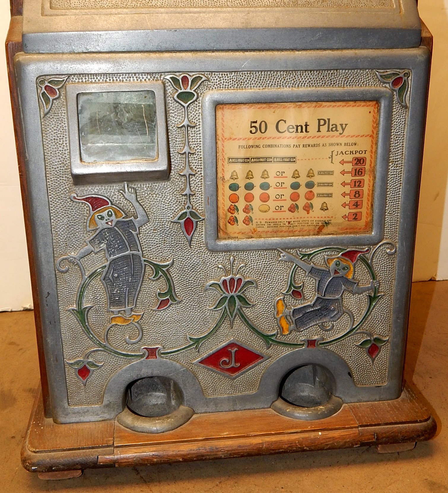 1929 Jennings Blue Boy / Dutch Girl 50 cent. Another earlie large coin machine. Here's one you don't see very often in all original condition. Original back doors top and bottom with original locks and keys top and bottom, original cash box. Just think of the cost to play a machine of this denomination back in the day, not many where made.