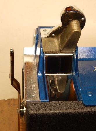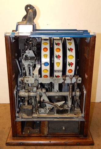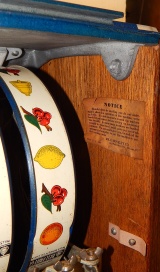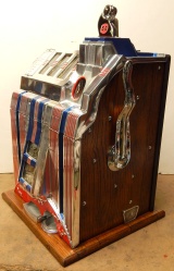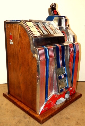 1935 Mills "Sky Scraper", 5 cent. Restored back to the original colors. everything on the machine is original but, the paint and chrome plating on the handle and coin head. Play very easy, pays as it should. Original cash box, back door with Mills lock and one keys, reel strips, very nice oak cabinet.