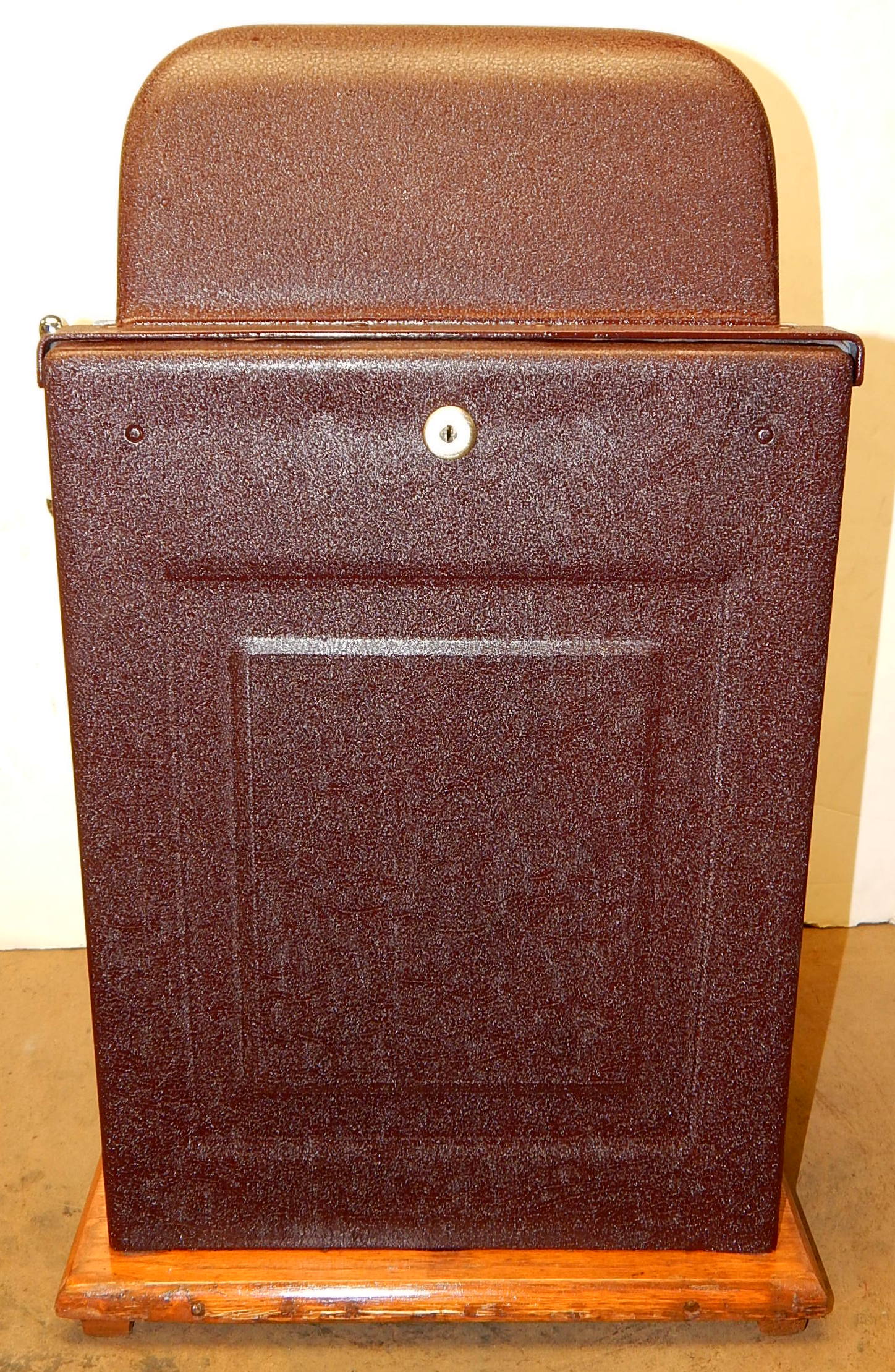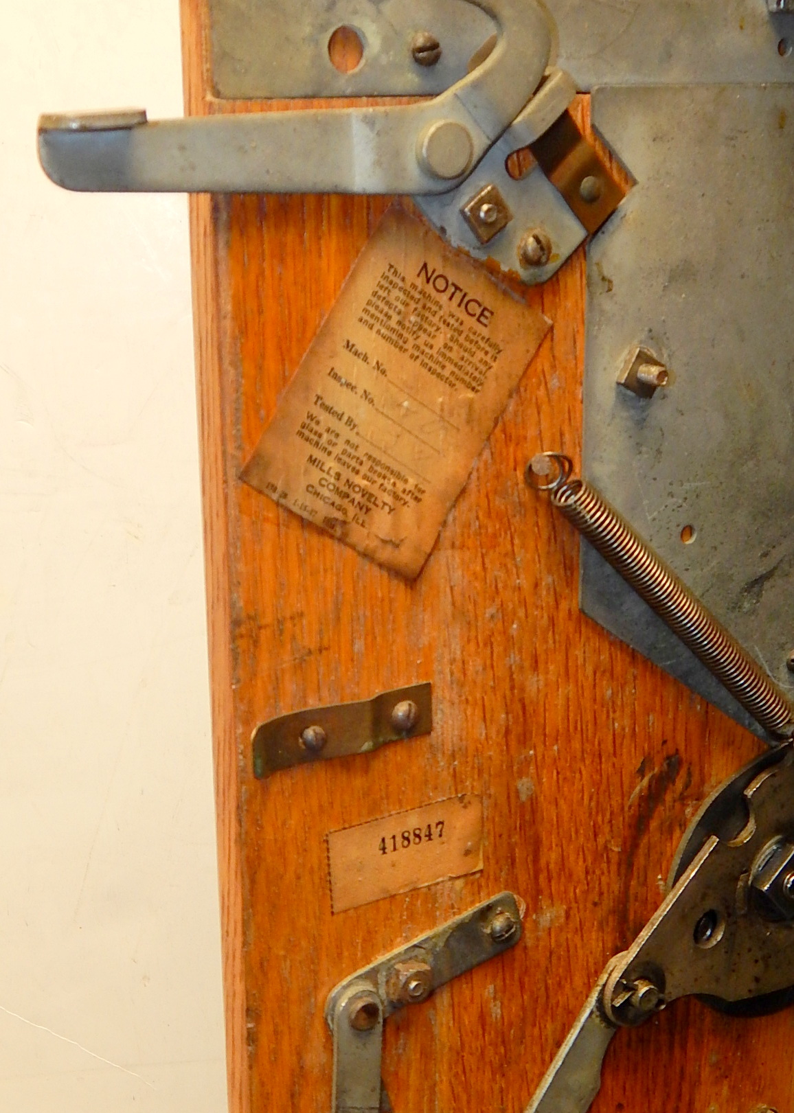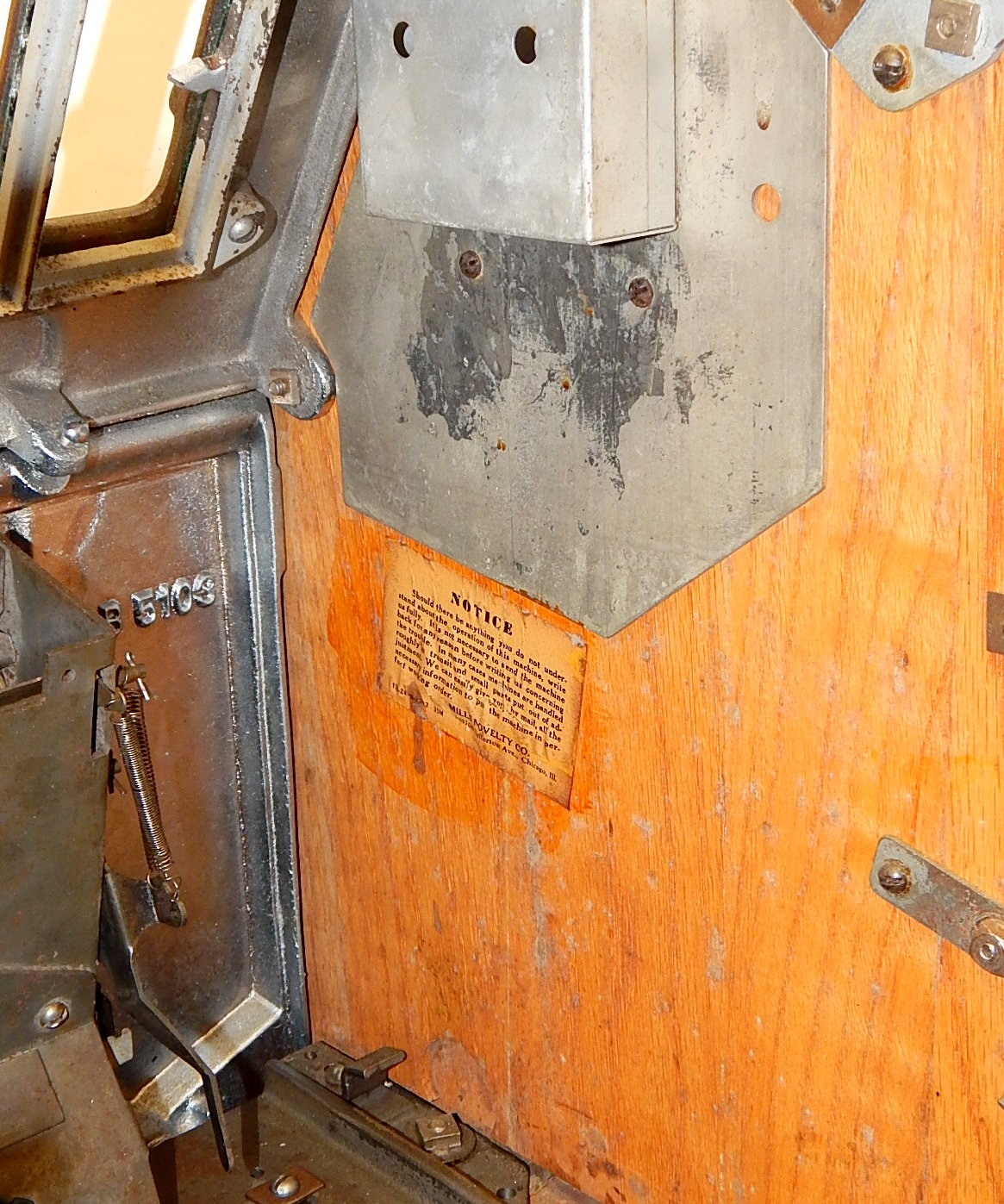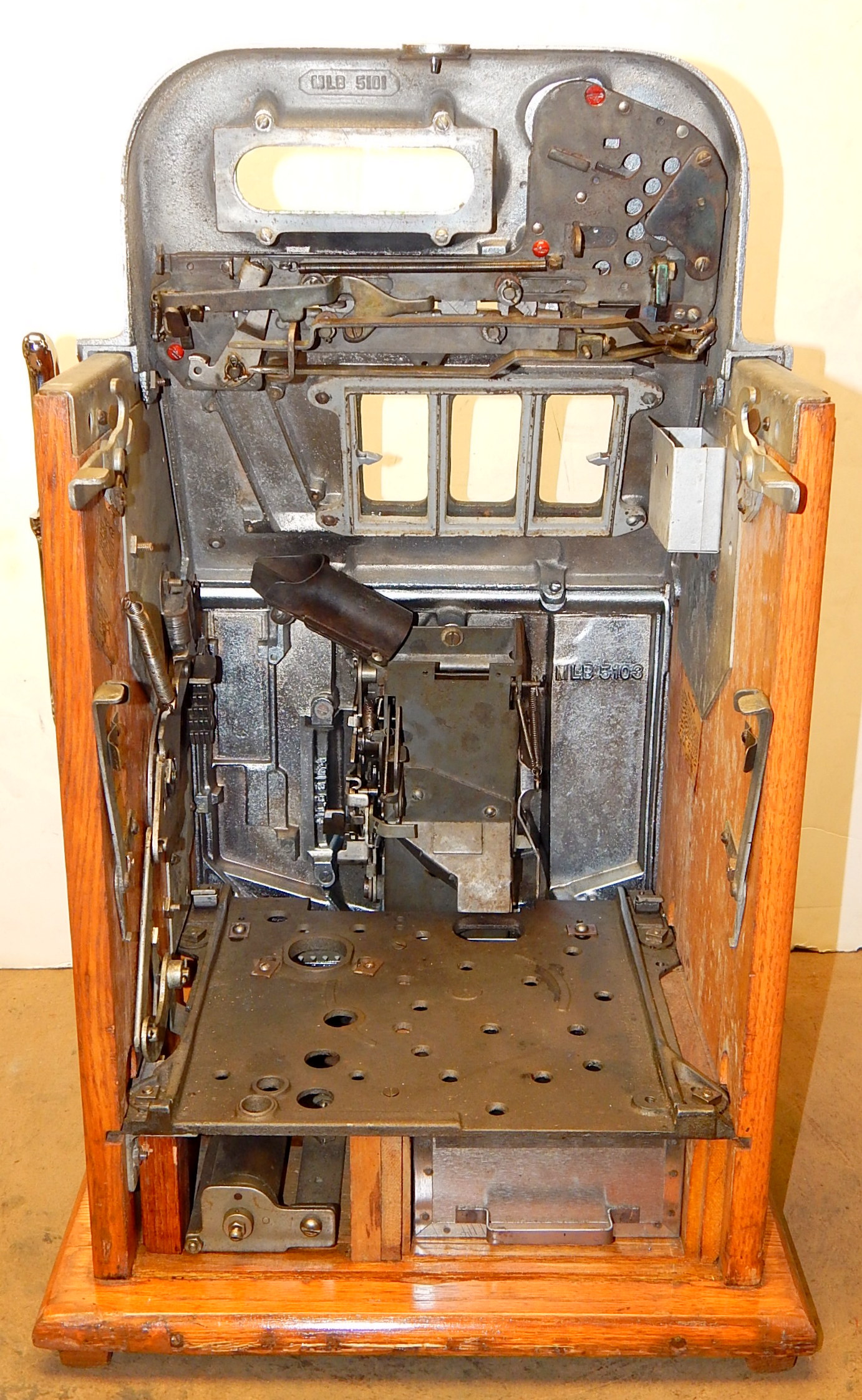 Mills 1938 Horse Head Bonus, 5 cent, Previously restored back to the original colors, painted wrinkle brown, trim in green with the Hard to find Bonus feature. New reel strips, new award card, cashbox, original back door with Mills lock with one key. Casting are chrome plated. Still has the original paper work on the inside of the cabint. Plays very easy and pays as it should.